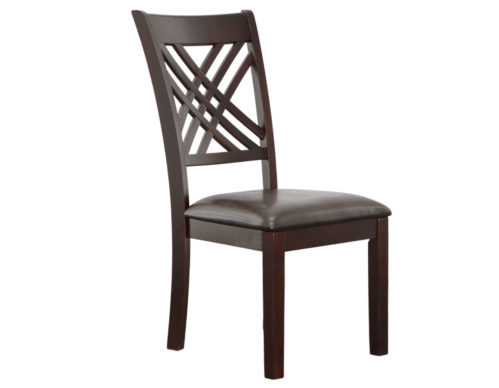 The look of the Adrian Side Chair is unique and modern. The interlocking “X” design on the chair back creates a stunning visual effect that warrants a second glance. The seats are upholstered in elegant dark brown vinyl and are easy to clean using just mild soap and water.