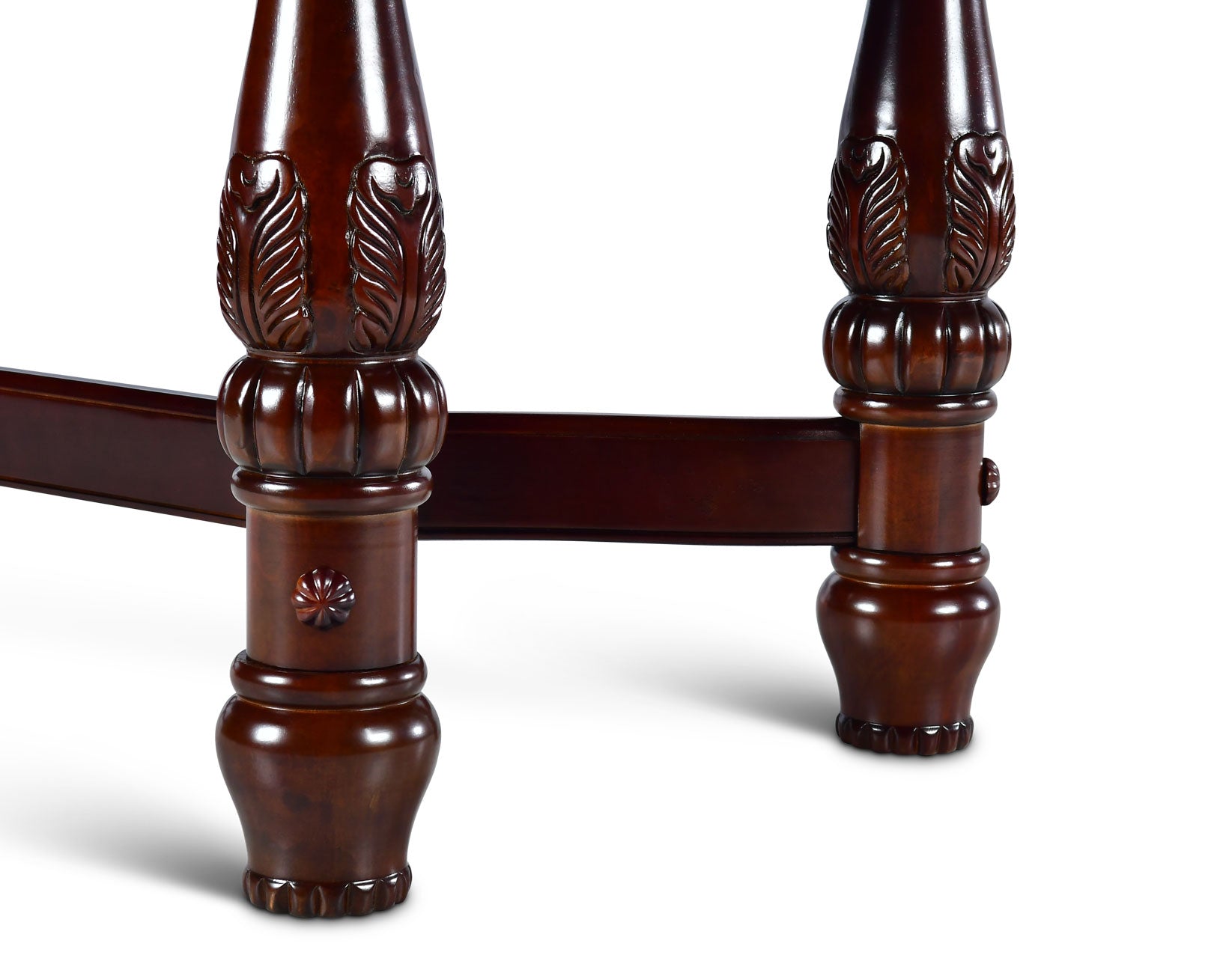 Opulent traditional styling with utmost attention to detail, Antoinette is sure to dress up any dining room. Classic acanthus leaf and grape moldings adorn the table and chair and the large-scaled table expands with a 24″ leaf to a full 120 inches to seat up to 10 people. The buffet and hutch are the perfect complement to this elegant dining collection.