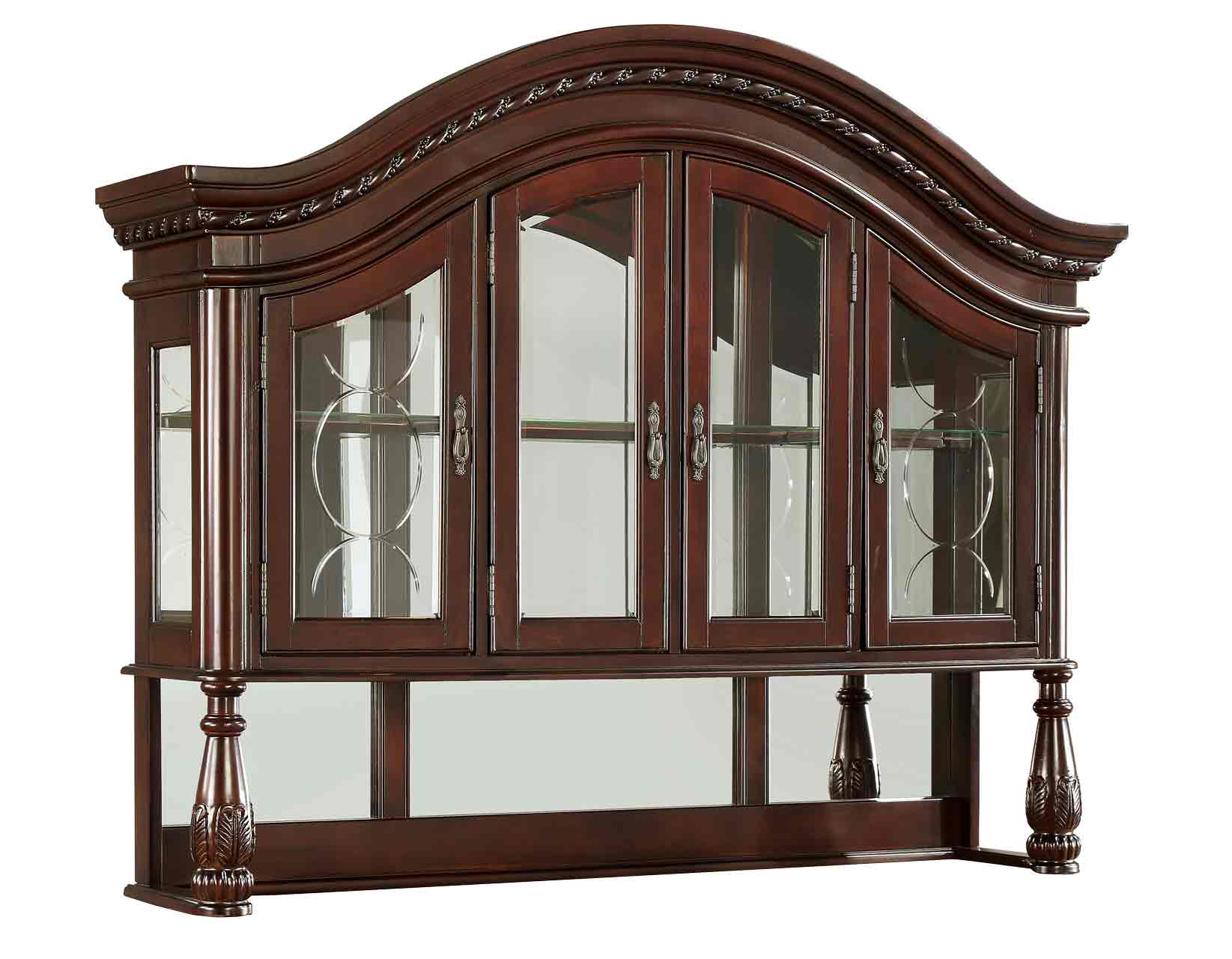 A beautiful flowing Hutch designed to top the Antoinette Buffet, this piece offers elegant traditional design with sparkling mirror back and back shelves that will prominently display all of your finest china.