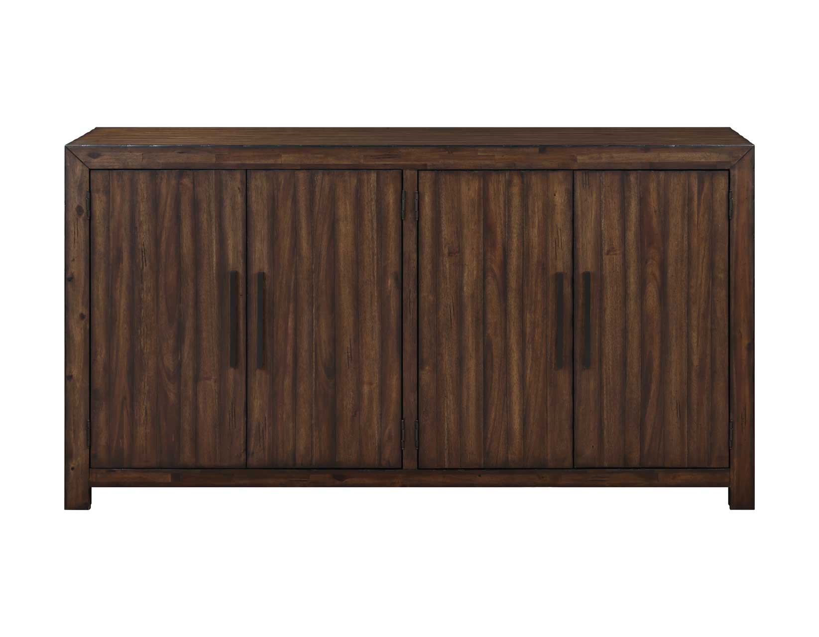 Clean design, rustic charm and exceptional storage combine in the Auburn Server.Its lustrous dark tobacco finish features burnished highlights and gently rubbed edges, creating a casually rustic ambiance. This 71-inch server provides generous storage for all your dining necessities, boasting two felt-lined drawers, three adjustable shelves, and a removable wine rack discreetly tucked behind four magnetic catch doors.