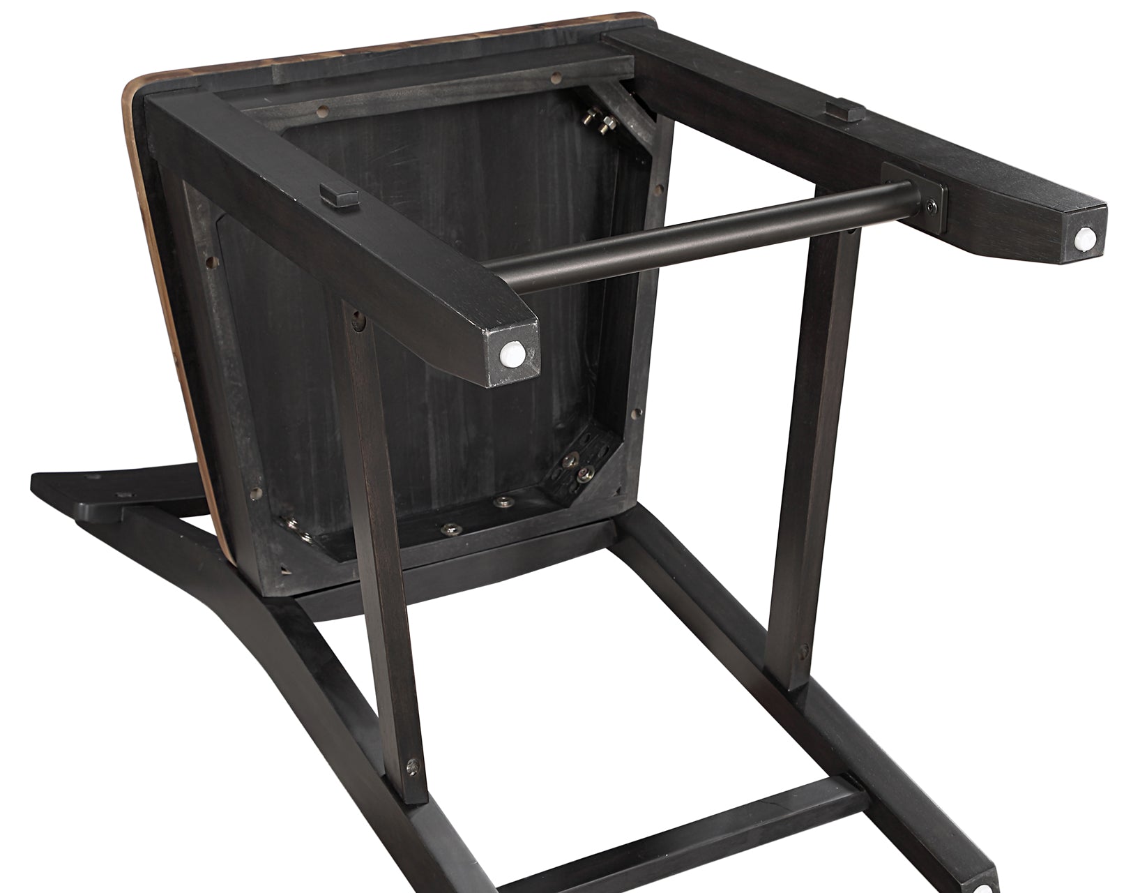 The Bermuda 24-inch counter stool merges industrial design with farmhouse flair. Its lustrous black finish and dark acacia seat elevate any 36-inch high counter setting. Whether in the kitchen or paired with the Bermuda Counter Dining Set, this chair offers comfortable seating with a subtle edge. A scooped seat and curved back ensure comfort, while a metal footrest and exposed back bolts add durability and style. Experience stylish, inviting seating for casual meals or entertaining guests with the Bermuda counter stool.