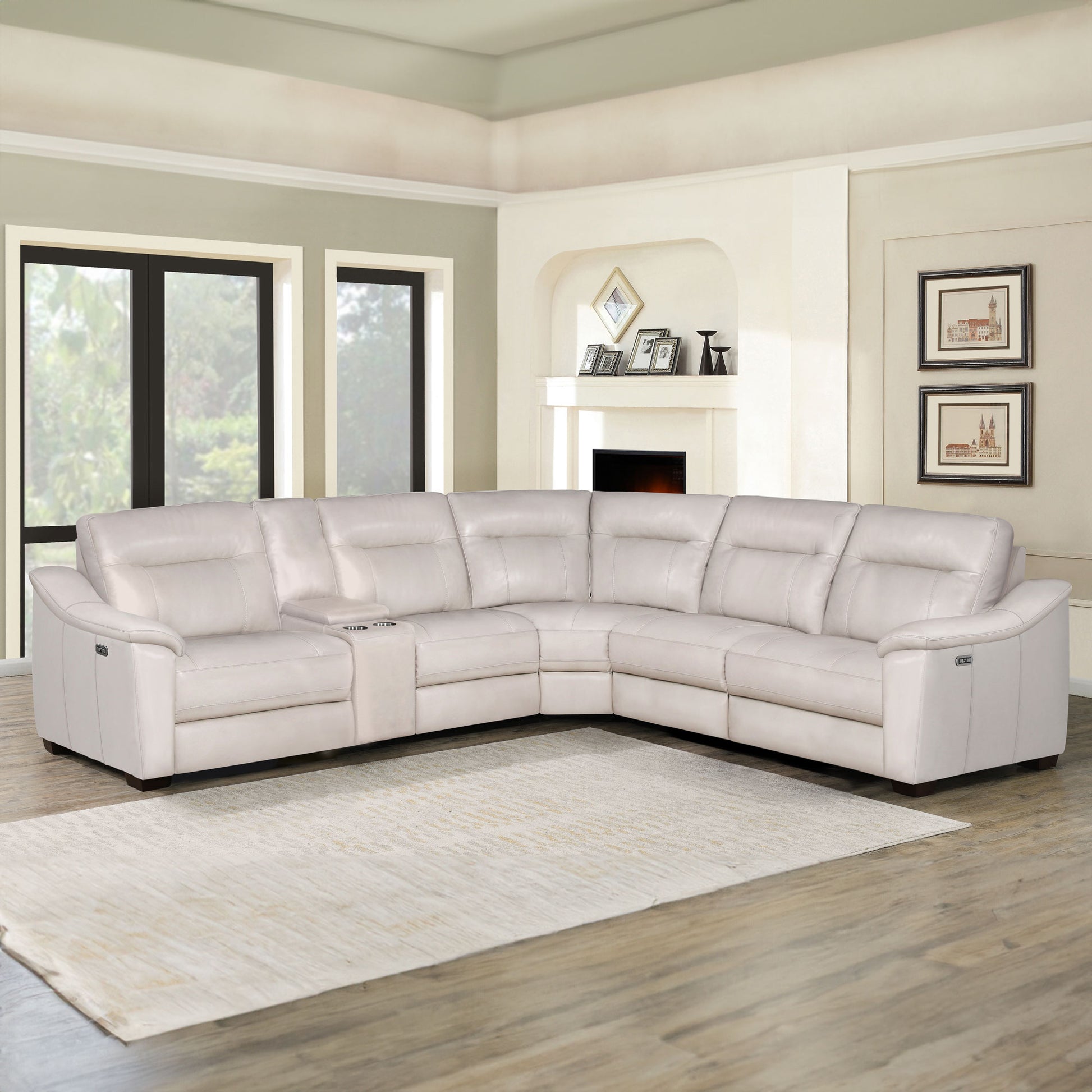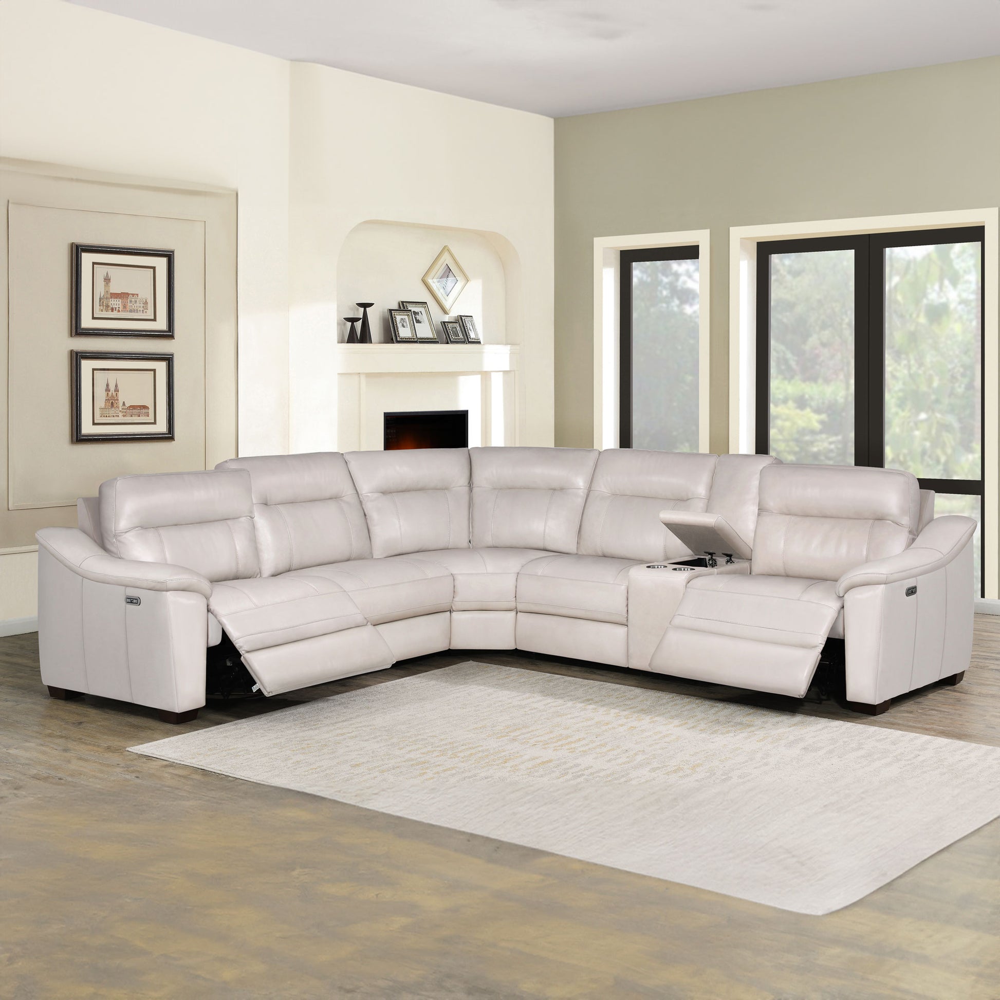 CASA 6-PIECE LEATHER DUAL-POWER RECLINING SECTIONAL, IVORY