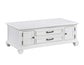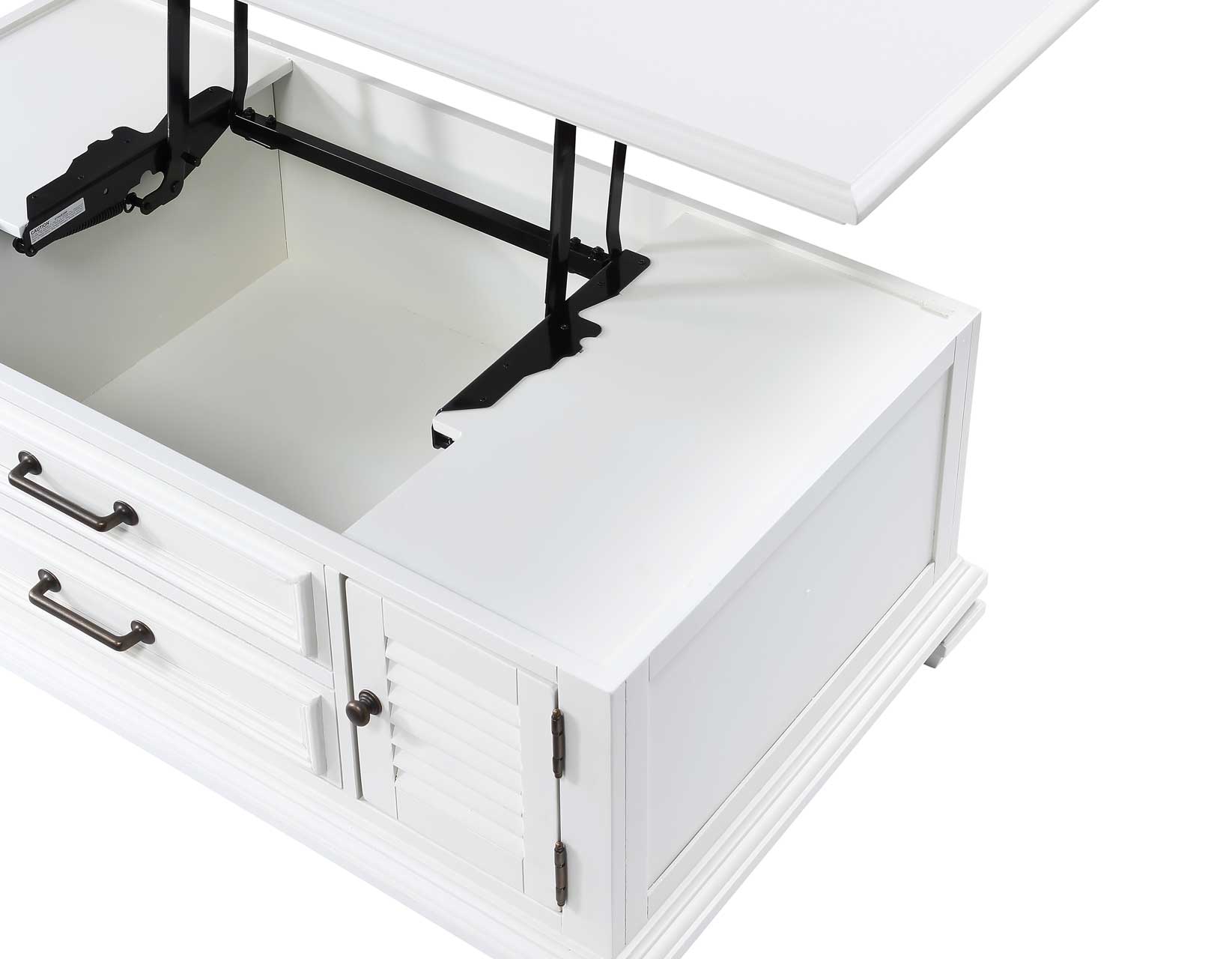 Modern farmhouse design in a white Lift-Top Cocktail Table that fits comfortably in contemporary or cottage decors. The Charlestown Lift-Top Cocktail makes a stylish addition to any living room with its clean aesthetic combined with the added function of a lift top so you can eat or work right from your couch.