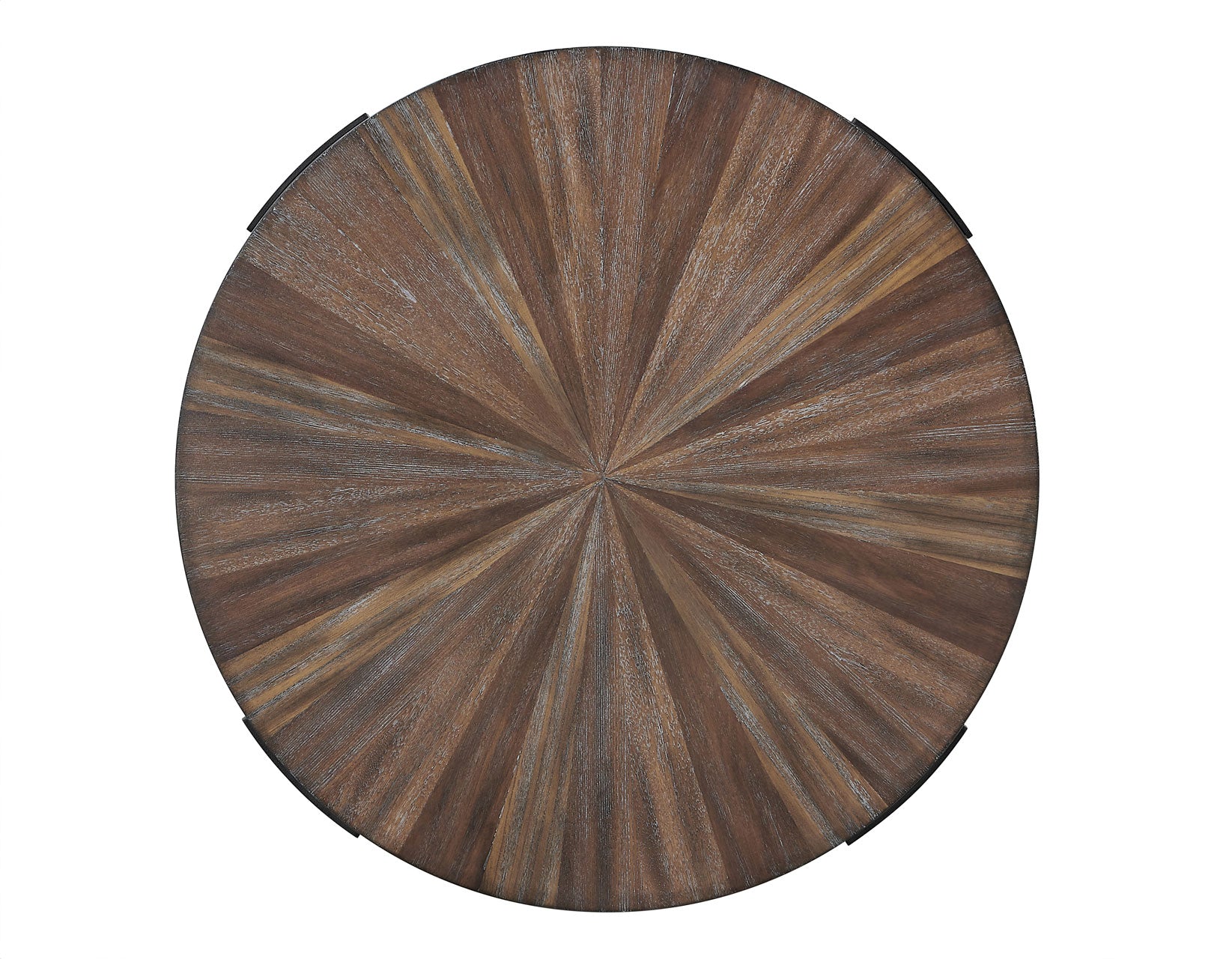 Modern meets rustic magic with the Chevron 22-inch end table. Think warm cinnamon hues dancing on elm, acacia, and veneer, kissed by hand-stained charm. This little gem brings cozy minimalism to any space, its sleek, round silhouette never overstaying its welcome.