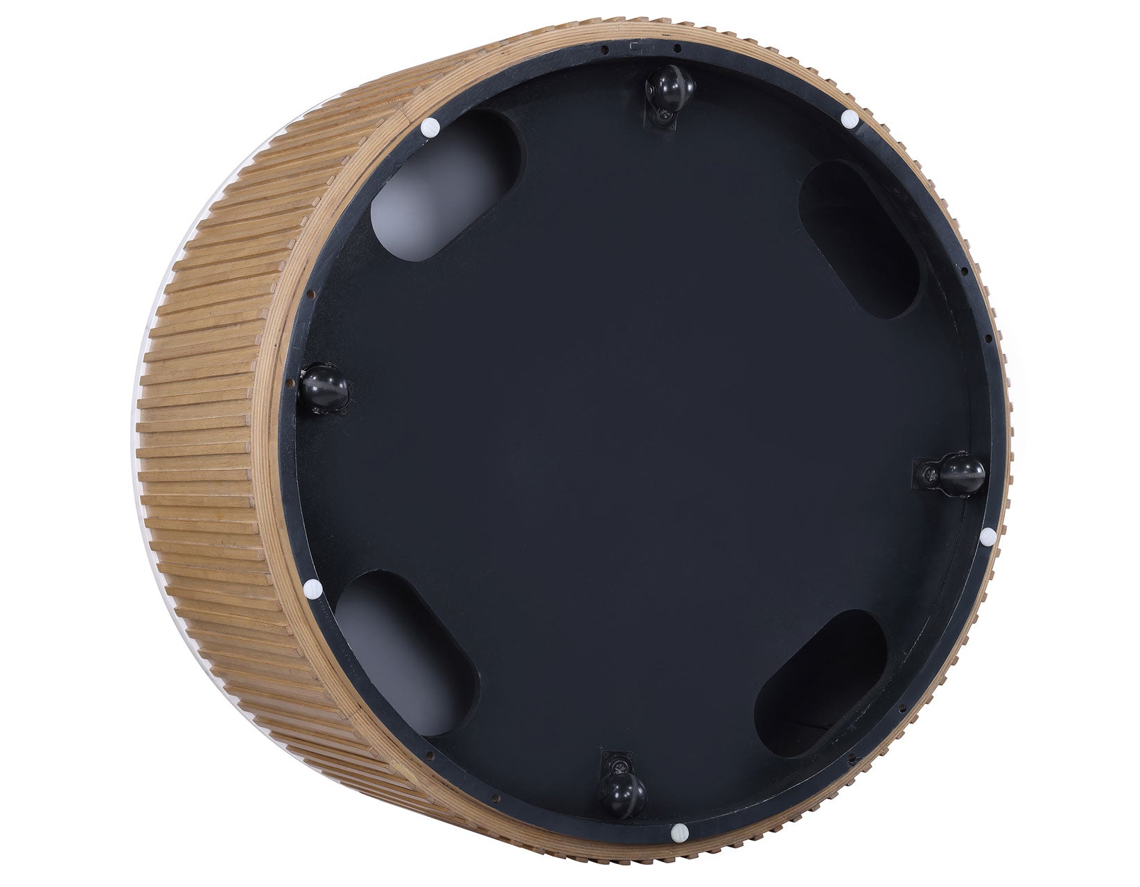Inspired by Art Deco and Empire styling, the Colvin 36″ Round Coffee Table adds refined elegance to any space. Its oak-veneered top in a warm toffee finish and reeded base bring timeless sophistication, ideal for those who appreciate sleek design. Featuring casters for easy mobility, this table is perfect for repositioning in front of a sofa or moving for cleaning. The spacious round top offers ample room for decor or essentials, combining luxury, practicality, and versatility to elevate your home’s style.