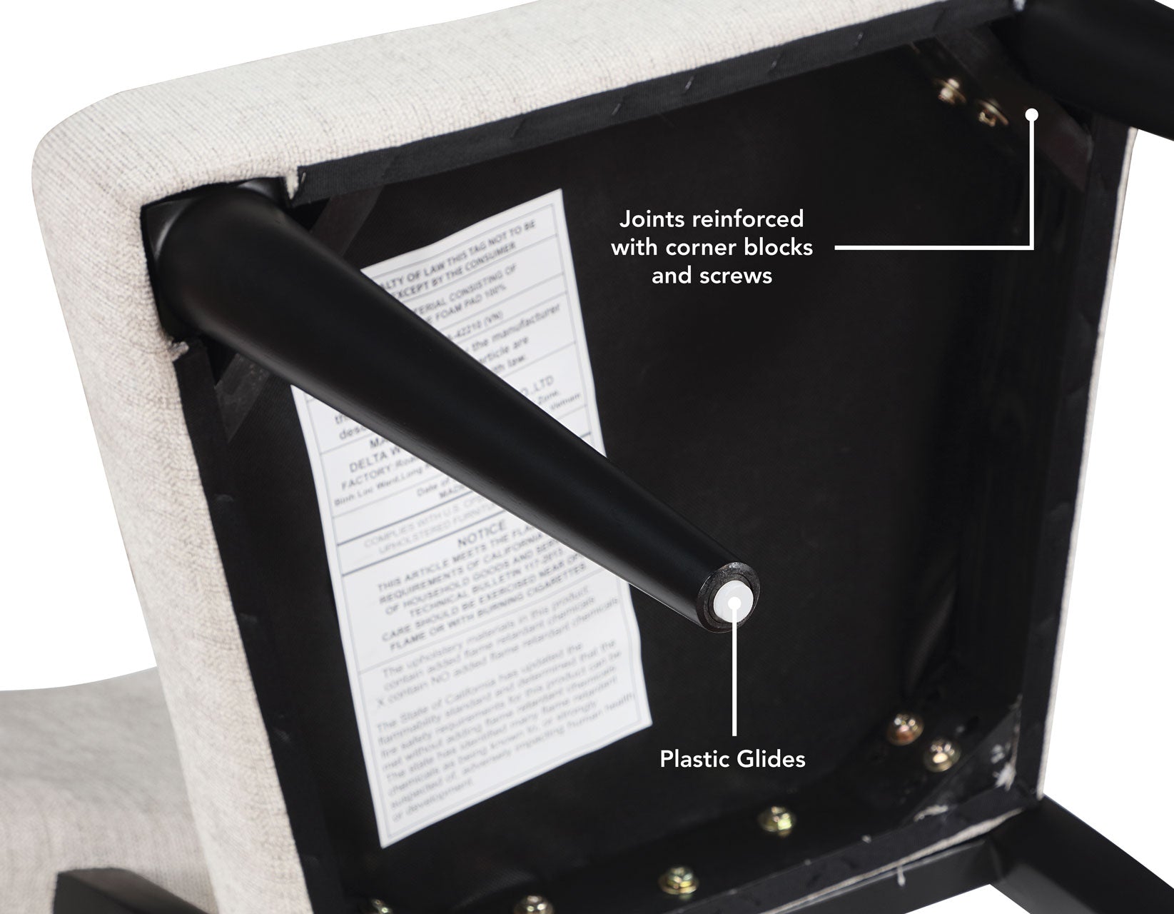 The Colvin Side Chair brings elegant comfort to dining, office, or accent areas. Wrapped in an exquisite vanilla polyester cover and sharply tailored with a box seat, this chair features a gracefully shaped back and natural black tapered, tubular legs, creating a sleek and cushioned seating experience that supports you for hours.