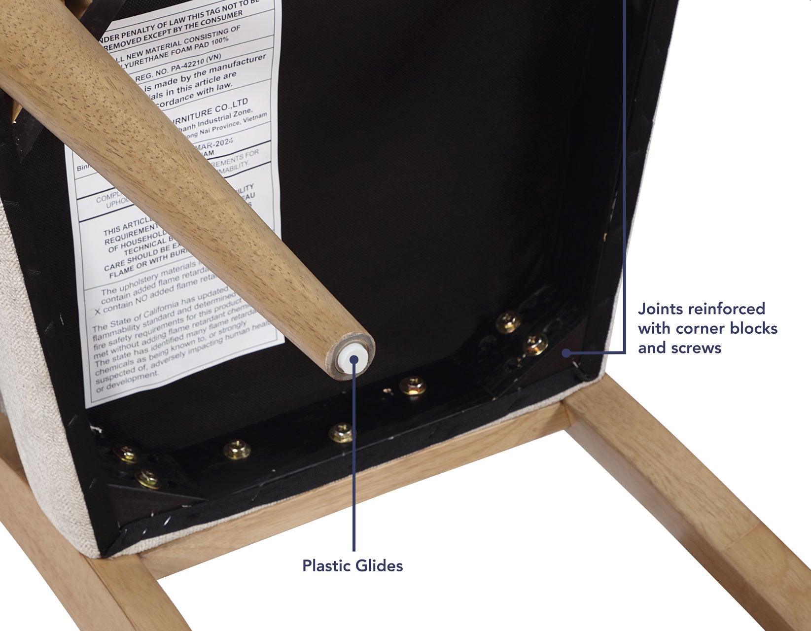 The Colvin Side Chair brings elegant comfort to dining, office, or accent spaces. Upholstered in oatmeal polyester and sharply tailored with a box seat, it features a gracefully curved back and natural toffee tapered legs for a sleek, cushioned look. The channeled texture adds visual and tactile appeal. Built with corner-blocked joints and solid wood legs, the Colvin offers lasting durability—making it a stylish, supportive addition to any space, whether for casual seating or extended dining.