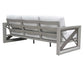 Neutral contemporary style in an outdoor set that will make your patio a showcase. This Sofa looks like it was sculpted for the great outdoors with beveled end panels that frame a modern geometric pattern. And although it looks like an indoor upholstery set, this group is built for the outdoors with rust resistant aluminum frames, solution- dyed acrylics and fast-drying foam cushions.