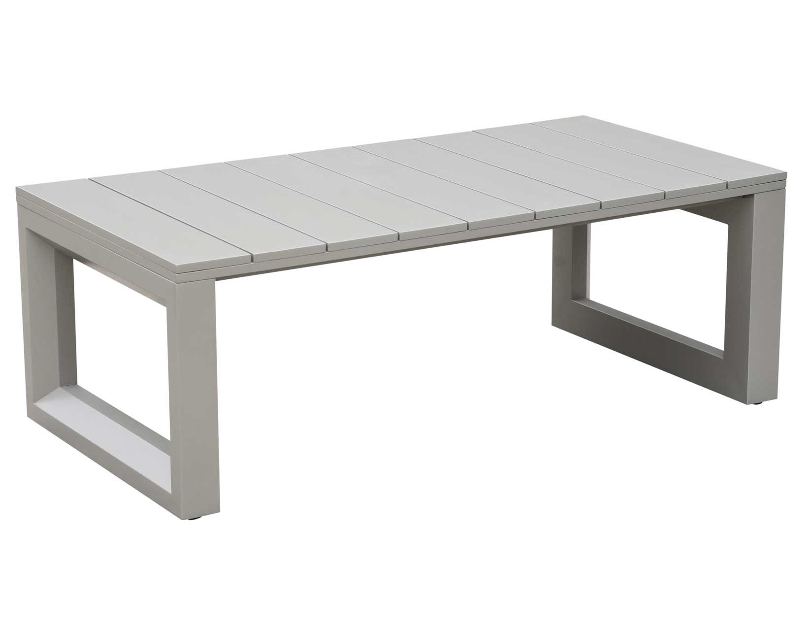 Neutral contemporary style in an outdoor set that will make your patio a showcase. This Cocktail Table looks like it was sculpted for the great outdoors with beveled end panels that frame a modern geometric pattern. And although it looks like an indoor item, this table is built for the outdoors with a rust resistant aluminum frame that is also scratch and weather resistant.