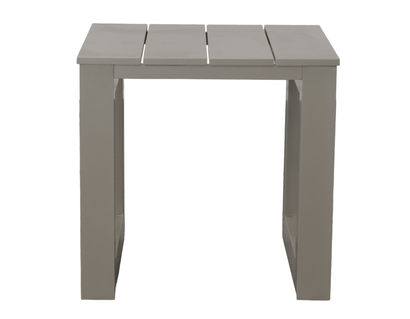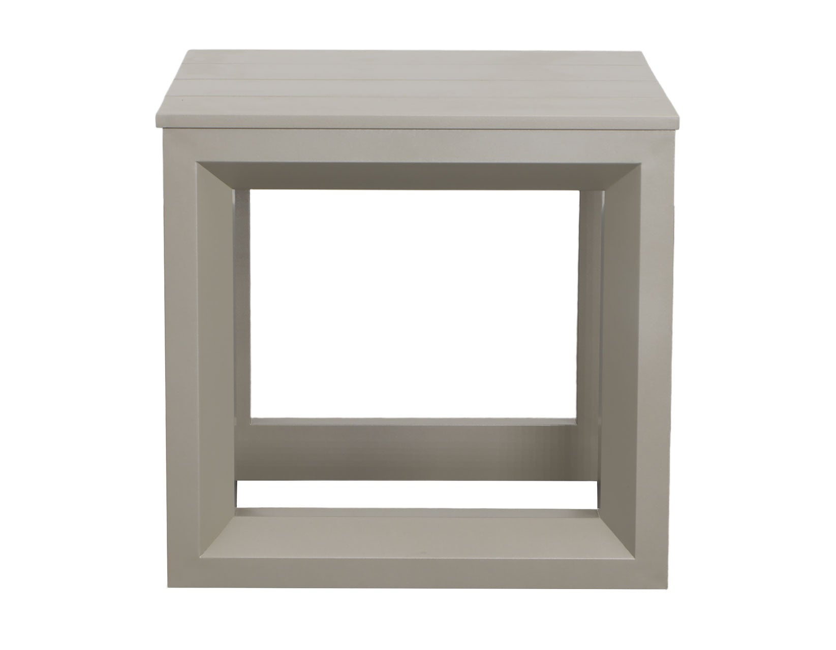Expand your outdoor living space with the versatile Dalilah Patio End Table. This contemporary piece perfectly complements the Dalilah Cocktail Table, or stands strong on its own. With its neutral tones and modern geometric pattern, it seamlessly blends with any décor, making it an ideal side table next to your favorite patio chair. Crafted from rust-resistant aluminum, this table combines durability with style. Its scratch and weather-resistant qualities ensure it will maintain its beauty through all seasons.