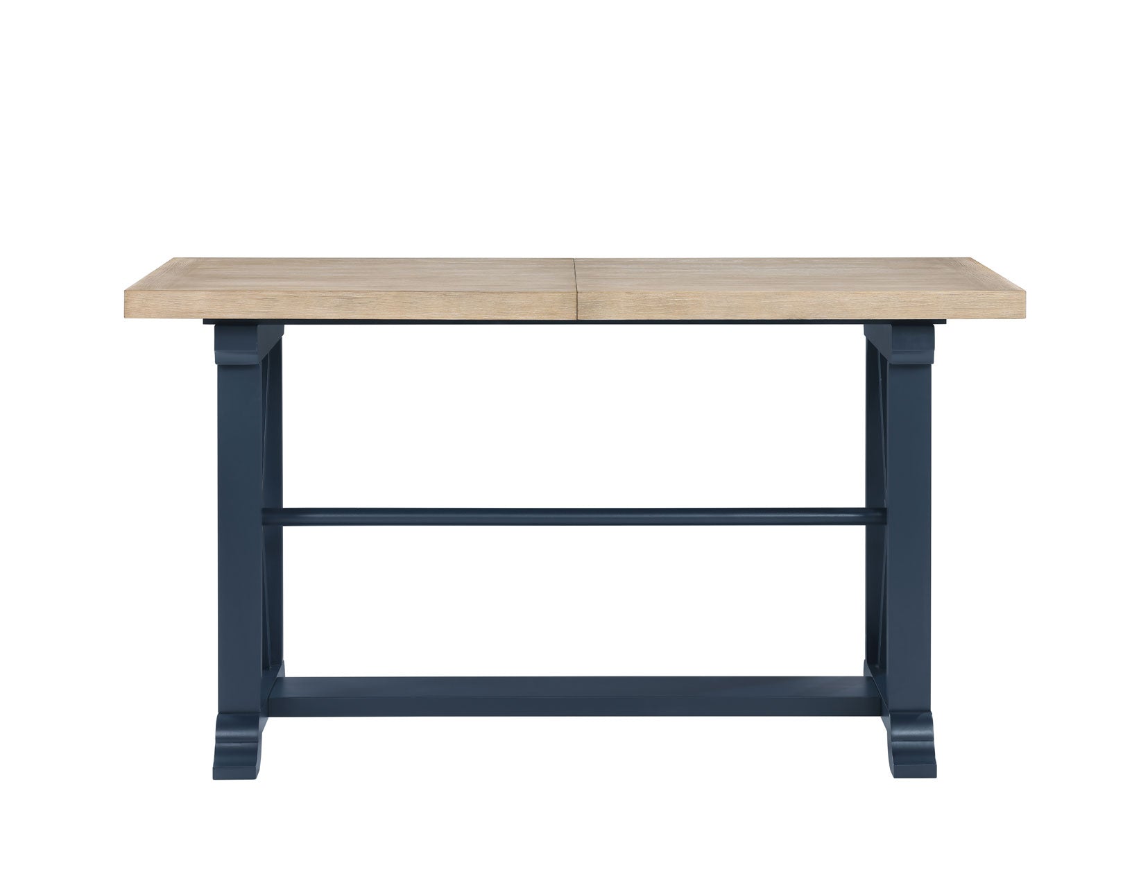 Darcy 64-82″Counter Table with 18-inch leaf, Midnight Blue and Natural Finish