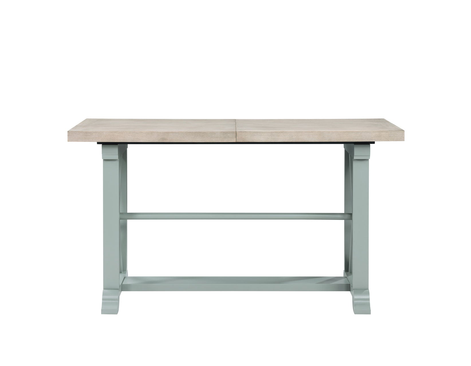 Darcy 64-82″Counter Table with 18-inch leaf, Mint Green and Natural Finish
