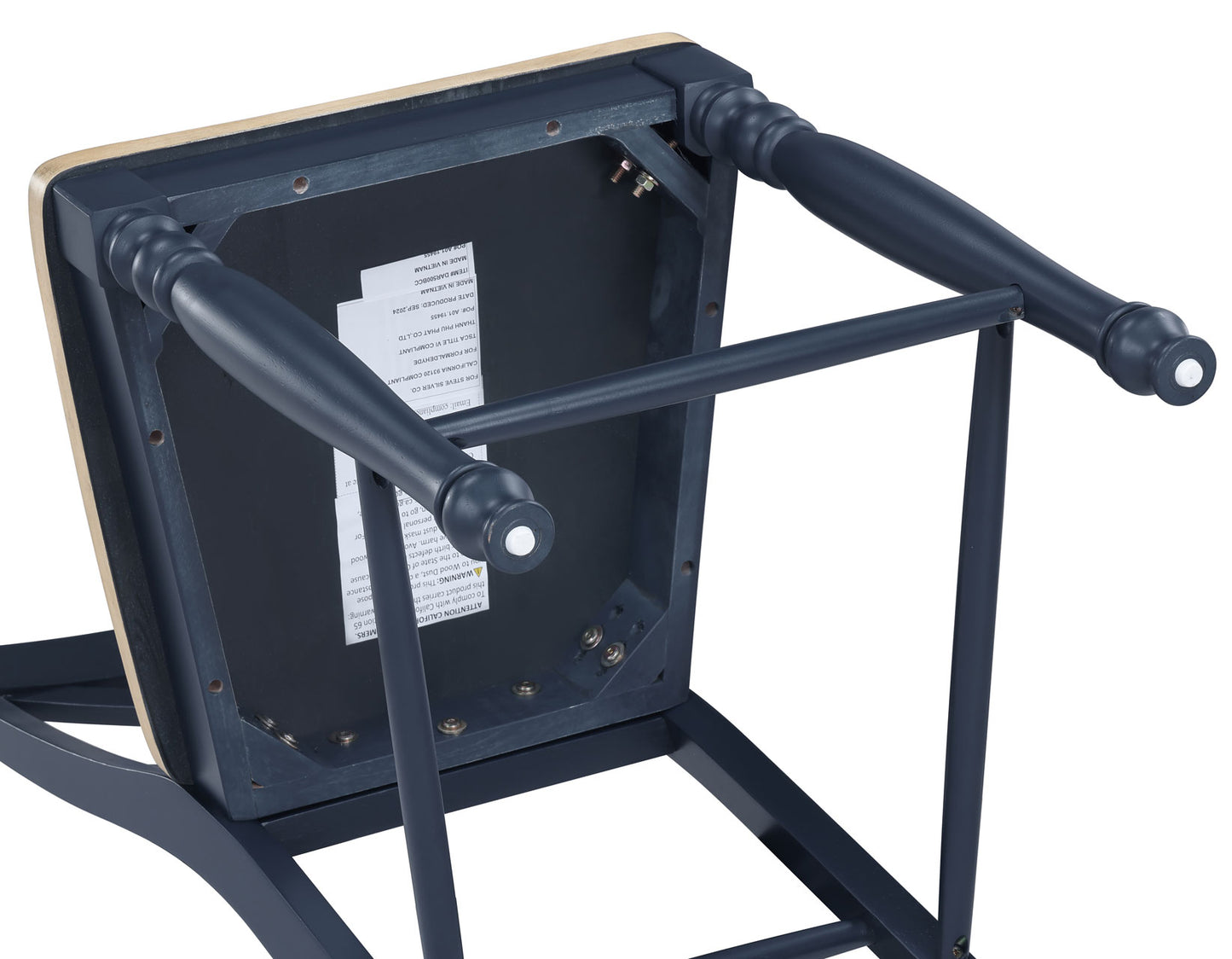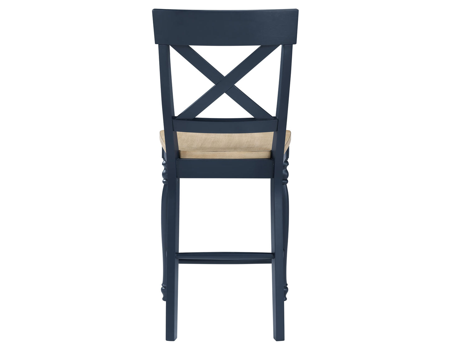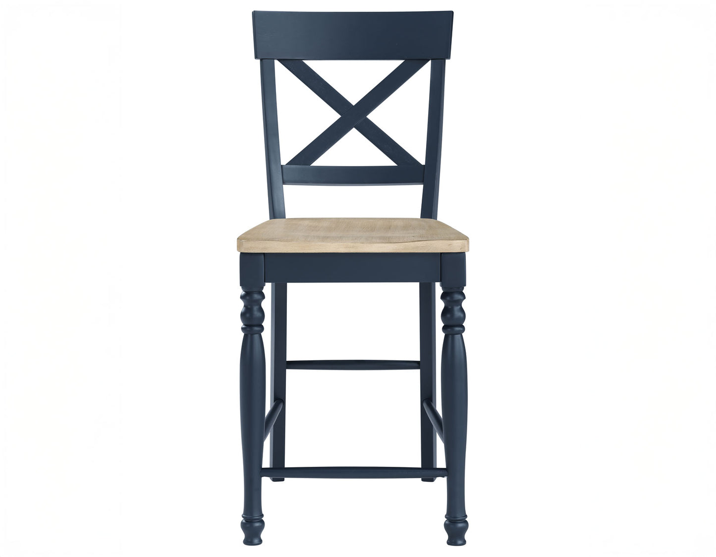 Add timeless charm to your space with the Darcy Solid Wood 24″ Counter Chair, designed for 36-inch high counters. Its modified Napoleon X-back blends traditional elegance with modern versatility, while the two-tone finish combines deep midnight blue and a natural wood seat, showcasing warm, rustic-modern appeal.