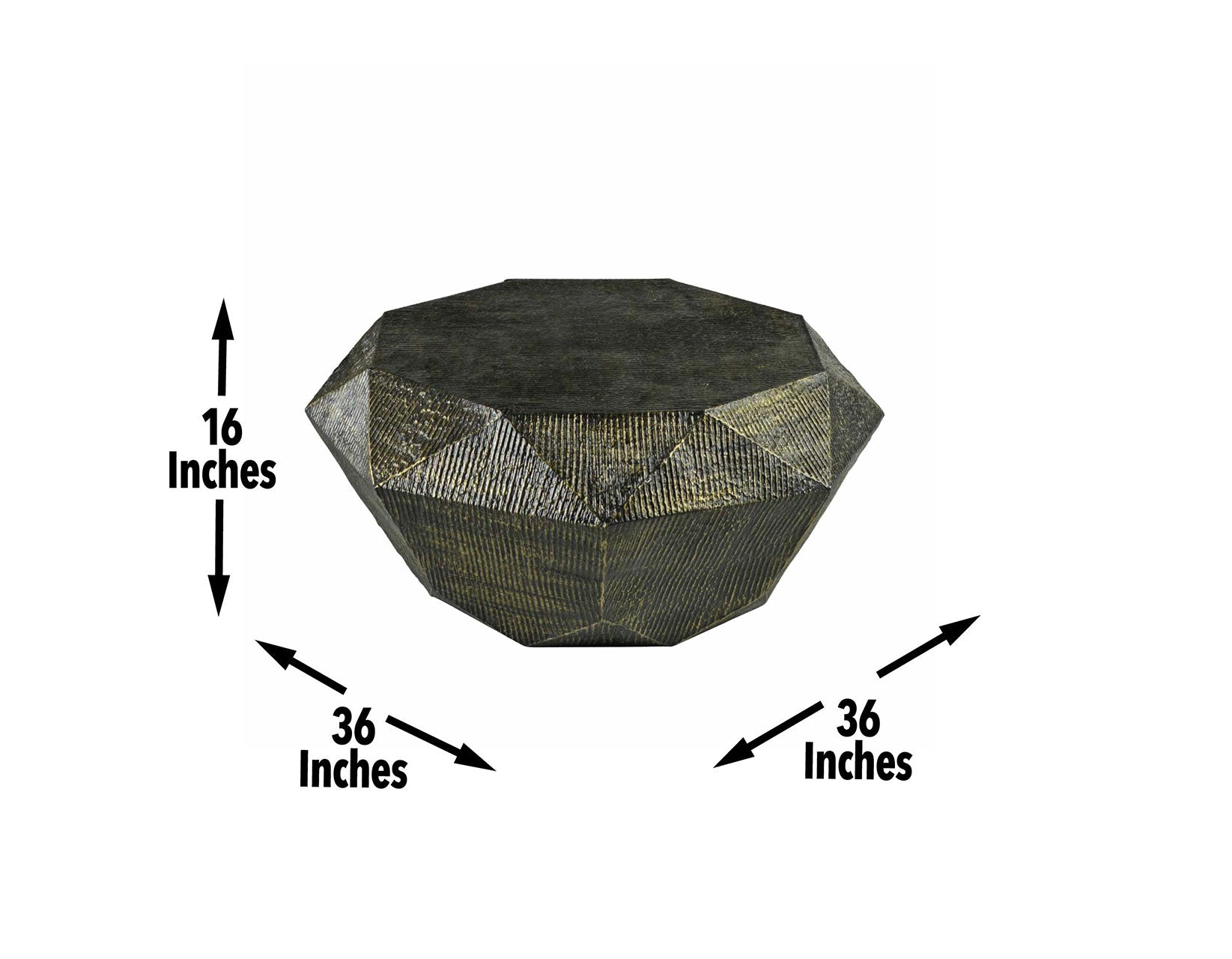 A diamond-cut Cocktail constructed from hand-stamped iron centers this collection of tables that feature architectural lines that appear to be carved by nature. A shimmering oil-rubbed brass finish over hand-stamped iron creates a contemporary table built for modern style.