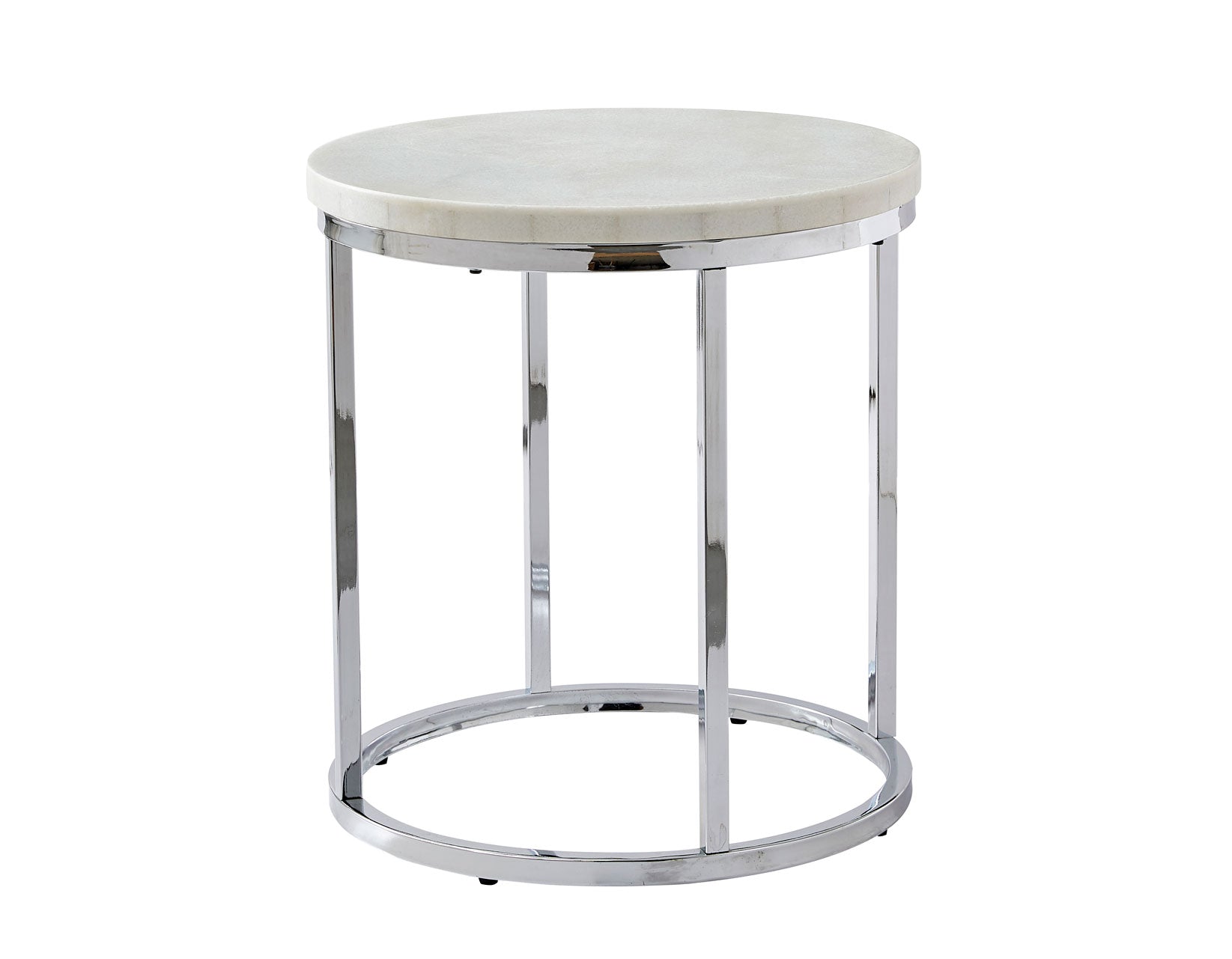 Your sense of style will reverberate with your guests when you add Echo tables to your living room ensemble. White marble tops and chrome-finished metal bases will add sparkle and shape to any room and this collection features a Cocktail Table, End Table and Chairside End Table that can be added in any combination to fit your needs perfectly.