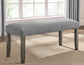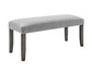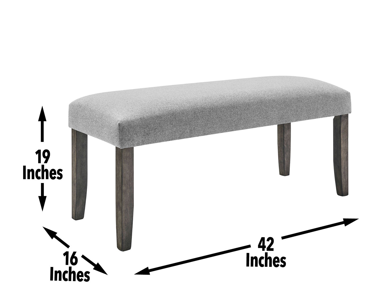 A comfortable bench in a fashion-neutral grey cover, the Emily delivers transitional styling in a convenient seating package. This bench works well paired with the Emily dining table or for use on its own in a hallway, the end of a bed or for use in a living area for extra seating. The solid wood legs feature a mossy grey finish and are tapered for an elegant yet casual look.