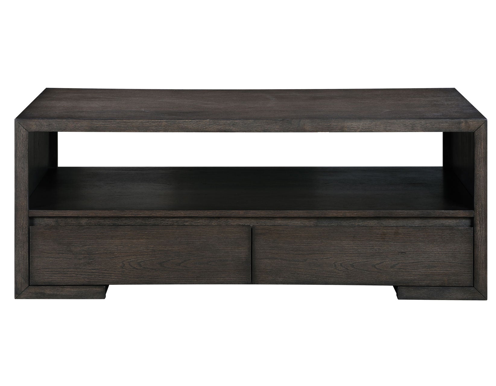 The 48″ Evan Coffee Table features a clean, minimalist design with a walnut finish over oak veneers. Its hardware-free exterior and spacious bottom shelf provide organized space, while two drawers offer a great place for additional organization. With its modern style and ample surface area, this coffee table is the perfect centerpiece for your living room, complementing sofa or loveseat while offering both style and functionality.