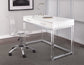 Sleek contemporary styling in a desk set that features an interesting interplay of chrome, acrylic and painted wood finishes. The compact design of the desk and chair allows it to fit in a variety of places and the mix of materials gives the desk and chair a light, airy look to complement many decors.