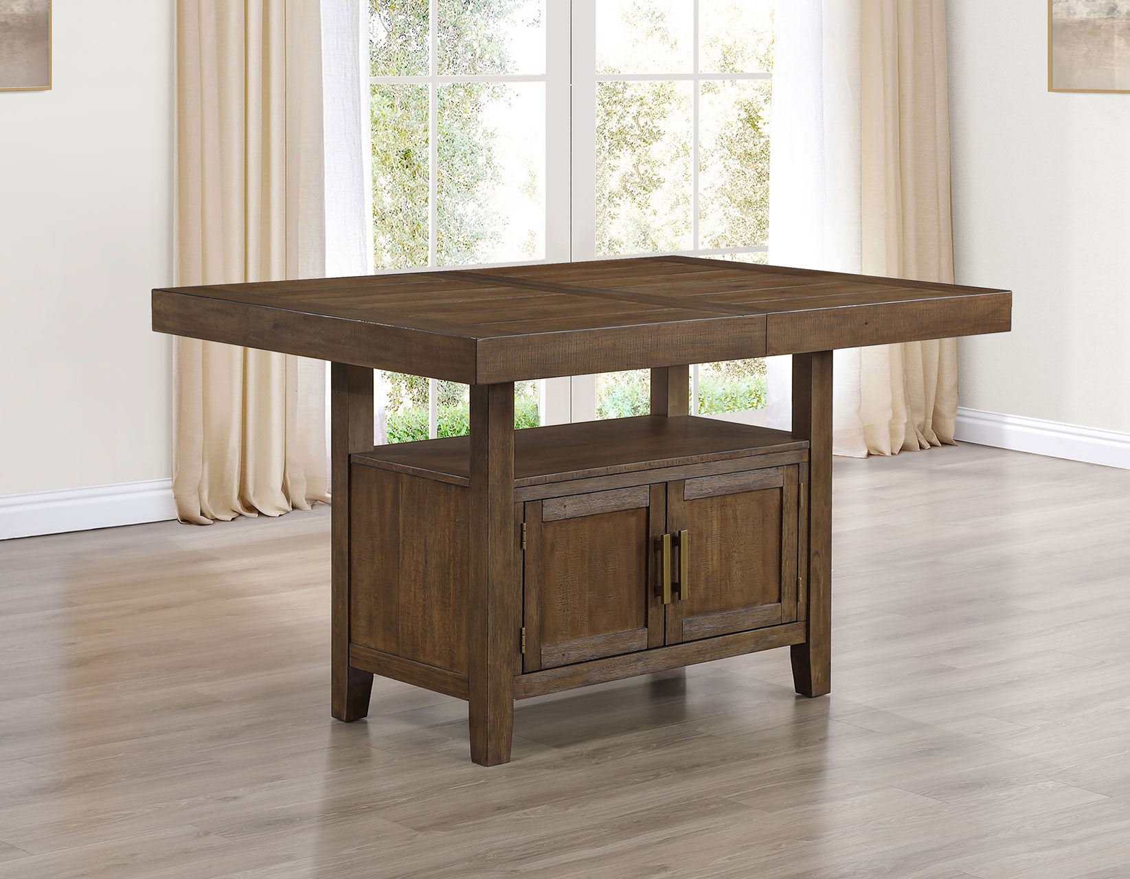 The Garland 36″ Counter Height Table blends modern design with a distressed toffee finish for a casually elegant look. Clean architectural lines pair with a relaxed finish, creating a stylish yet inviting dining centerpiece. Its modern silhouette is softened by a faux plank top, distressed with rasping and threading techniques for refined, casual sophistication. At a comfortable height for both sitting and standing, it’s perfect for dining, gathering, or even working while standing. Sturdy yet approachable, the Garland Counter Height Table is built to welcome and entertain for years to come.