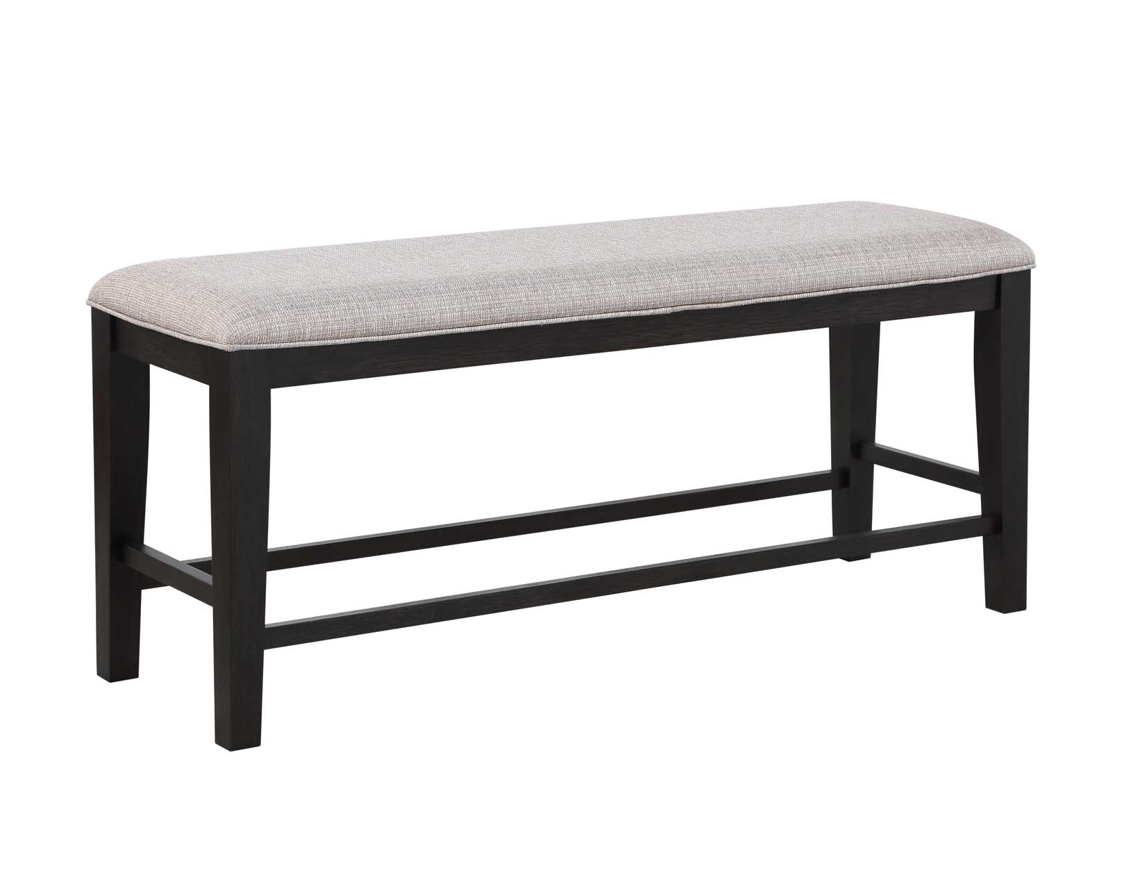 A crisp clean look with a transitional style for modern or farmhouse decors, the Halle Counter Bench adds seating for multiple guests to any counter or the Halle Counter Dining set. The upholstered seat will make for a comfortable visit while the tapered legs and ebony finish add style to any dining area.