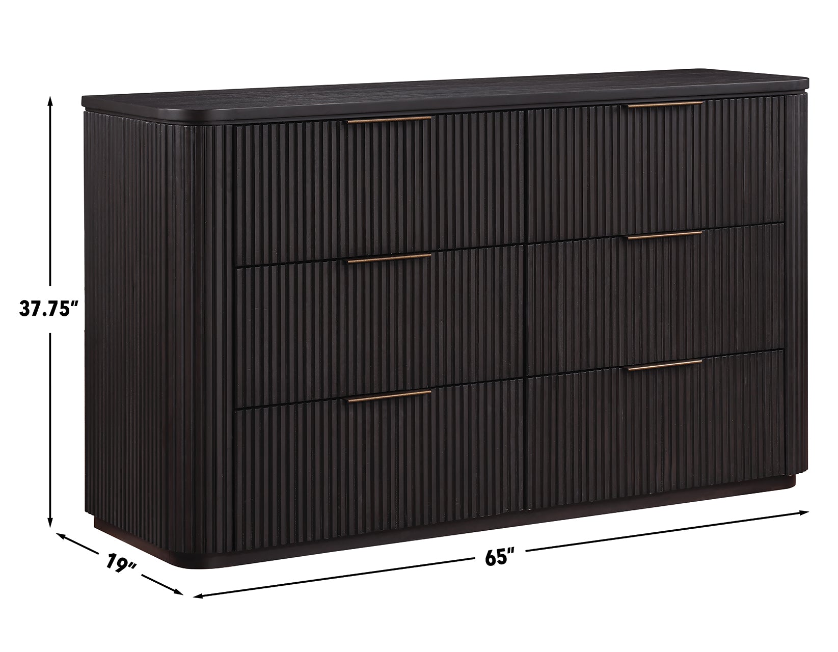 Henry 65″ 6-Drawer Reeded Dresser, Espresso Finish