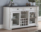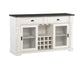Joanna presents a classic farmhouse Server updated for today’s dining. Turnedpilasters combine with cup pulls to create a look that feels both new and vintage. The Server has a two-tone ivory and mocha and features sliding glass doors that are great for display of collectibles. A middle wine rack with hanging stemware storage and three shelves add to the storage and convenience of the unit.