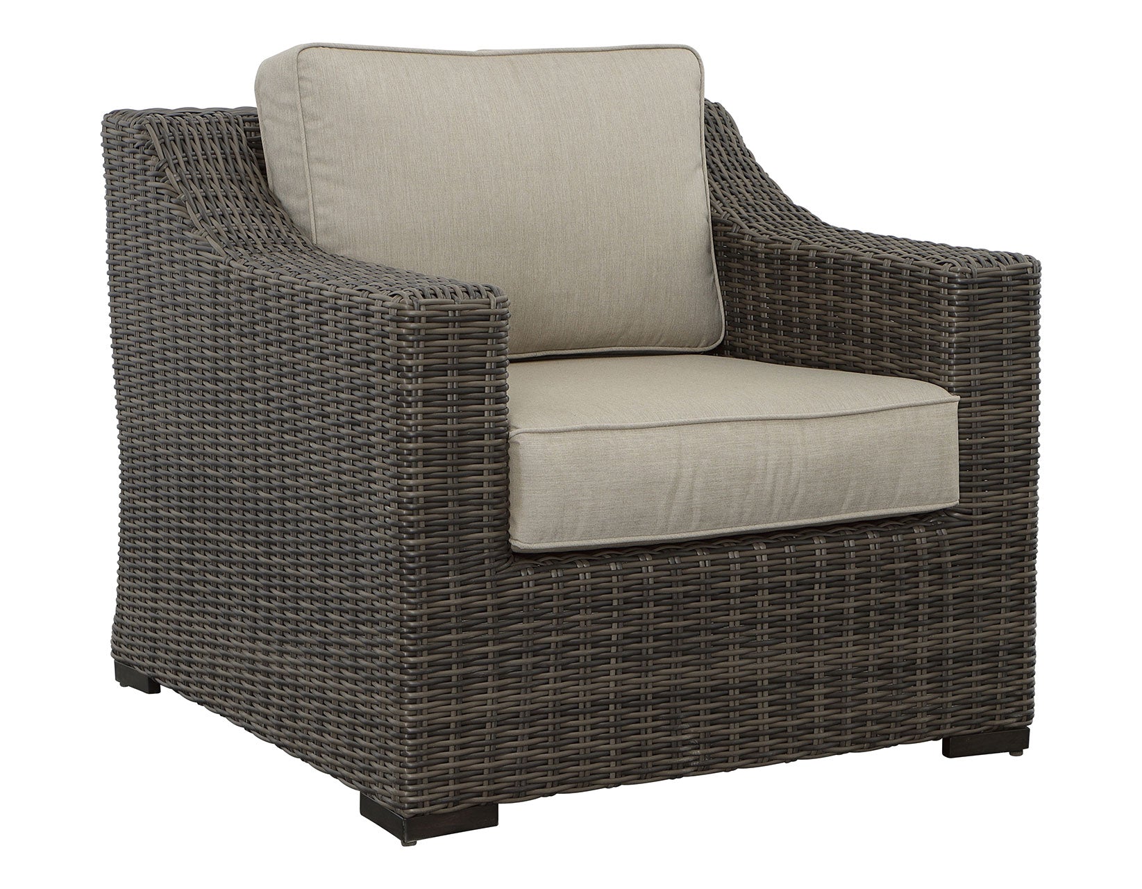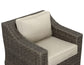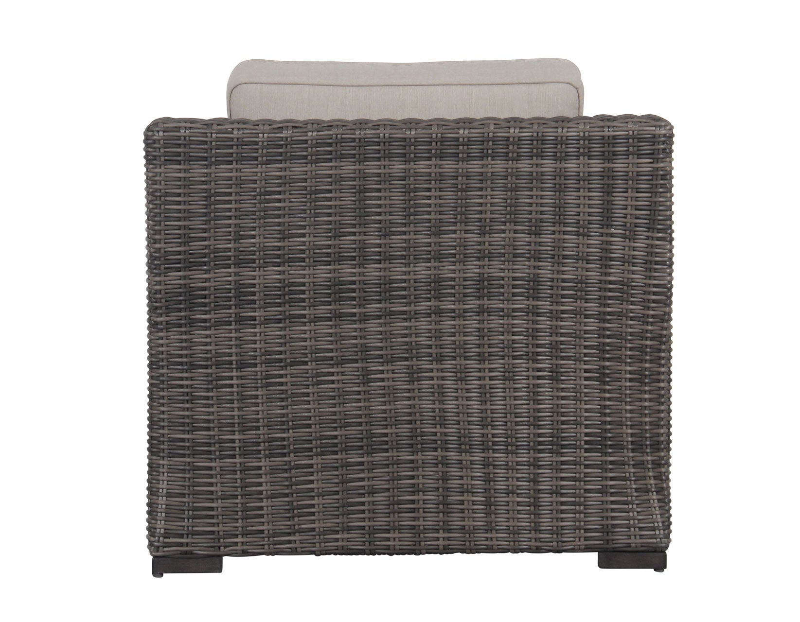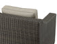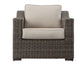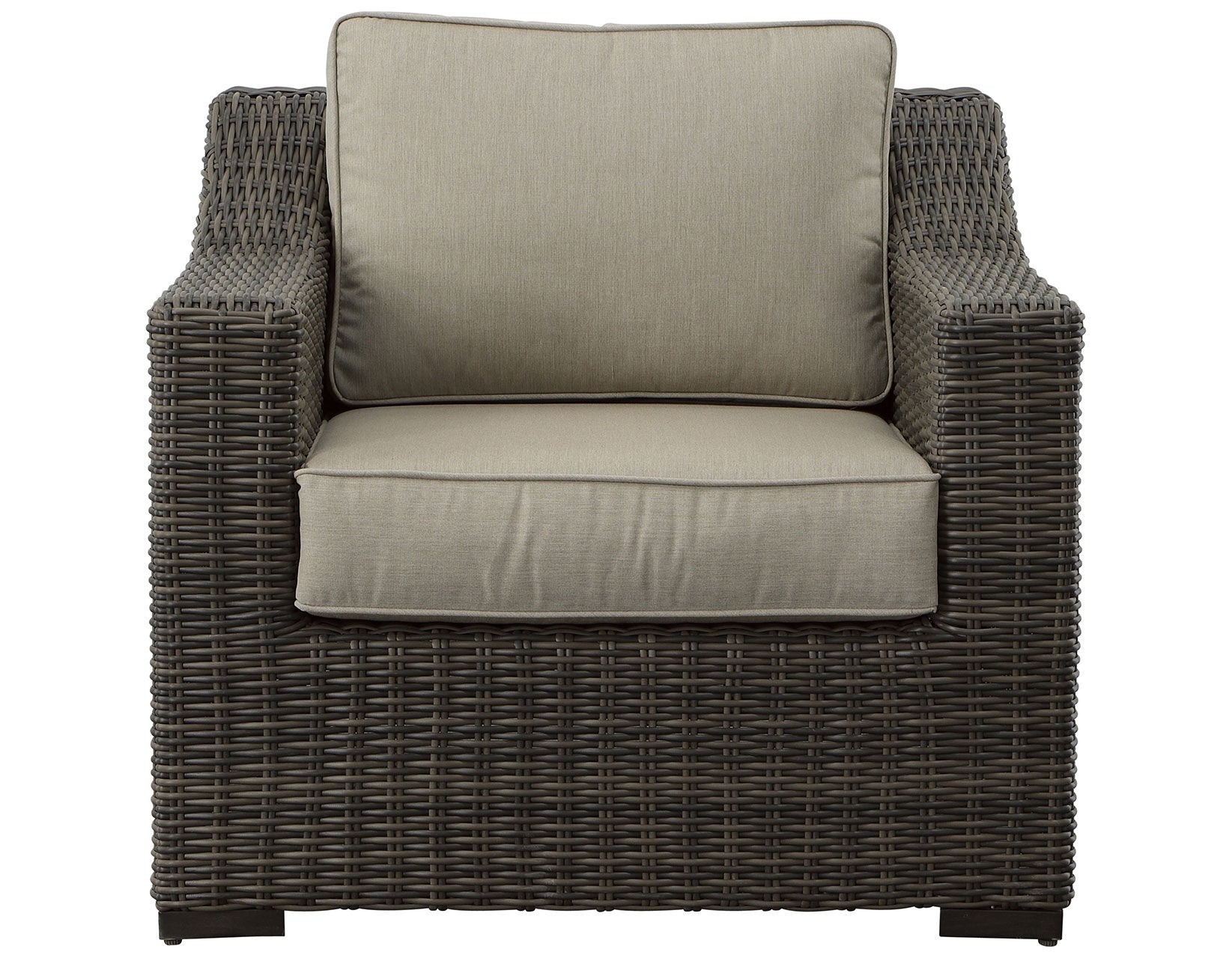 A great chair for lounging on the back patio, Jones features extra thick cushioning, resulting in an ultra-plush seat that allows you to relax and enjoy the view in luxurious comfort. Gently sloped arms and a combination of beige seating and brown wicker give this set a transitional look perfect for the great outdoors.