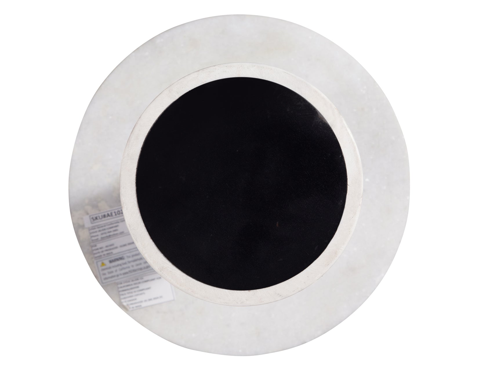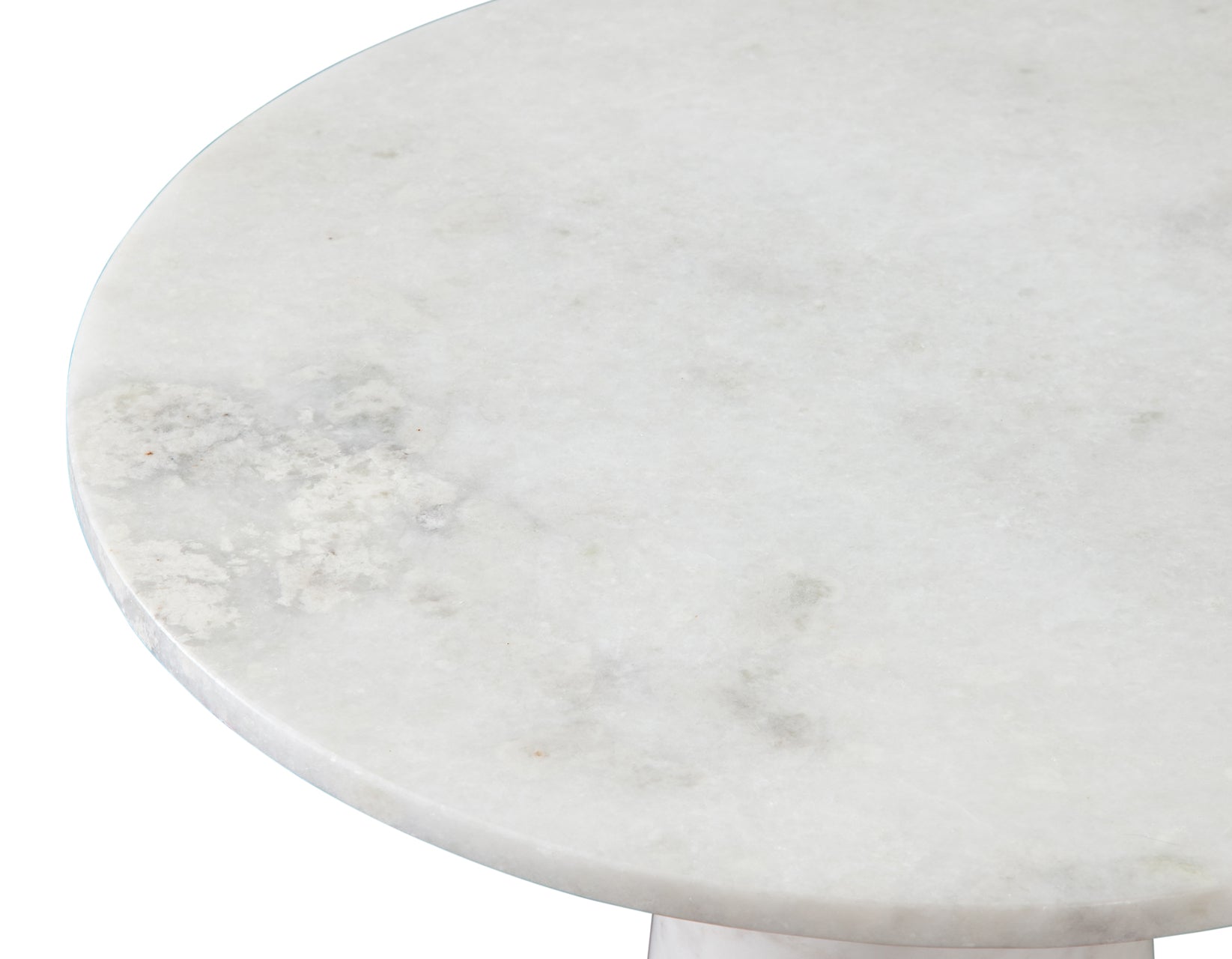 The Joni Accent Table blends natural elegance with sculptural design. Featuring an 18-inch round Talita White Marble top and a graceful teardrop marble base, each table is uniquely veined with soft gray patterns on a bright white surface. Mined and hand-finished, no two are exactly alike. Perfect beside a chair or as a nightstand, Joni brings refined beauty, lightness, and organic texture to any space. A true statement piece, this accent table showcases timeless style and the natural artistry of finely crafted stone.