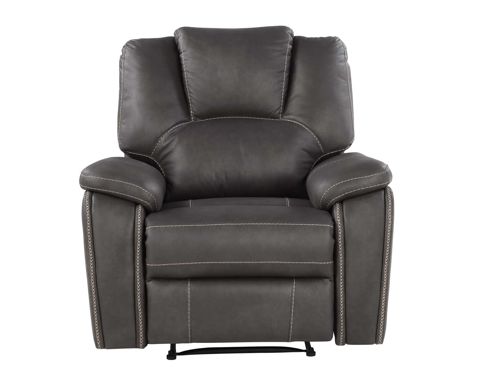The Katrine Reclining Chair showcases the best in manual motion upholstery with this recliner that is sure to become your favorite seat in the house. The Recliner is covered in a luxurious Charcoal faux-leather that features baseball stitching, padded armrests and a raised, padded headrest for a stylish and comfortable view and seat even when fully reclined.