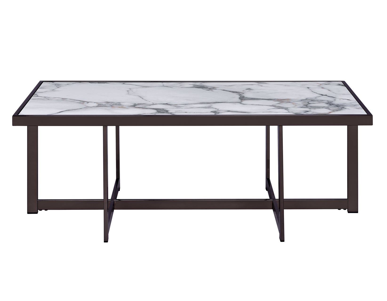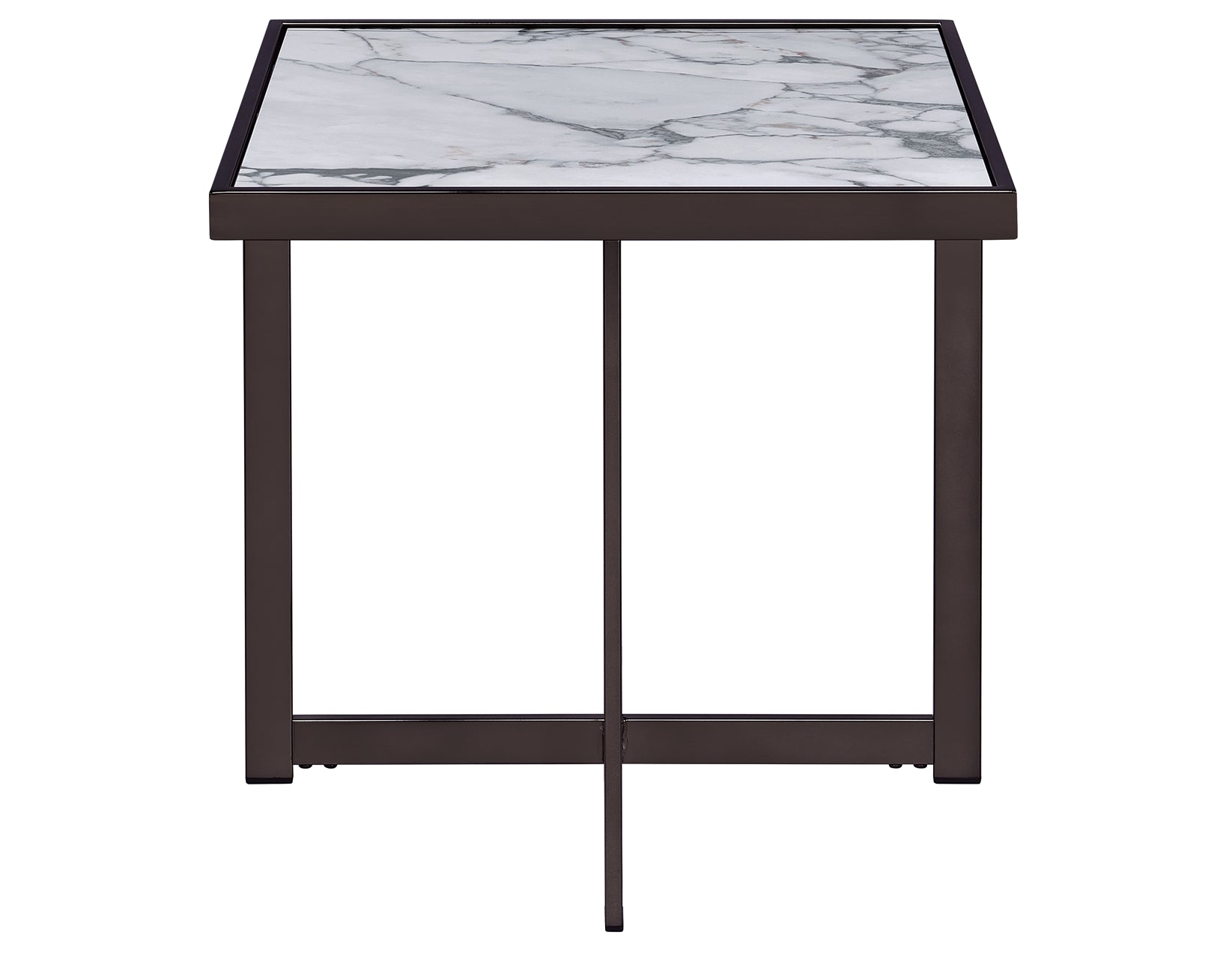 Sleek sophistication defines the Kayley 3-Piece Table Set, featuring a cocktail table and two end tables. Each piece showcases a stunning sintered stone inlay atop a black nickel-finished iron base, marrying modern elegance with durability. The sled bases with cross stretchers provide stability and architectural flair. Designed for performance, the set resists wear and requires minimal maintenance, keeping your space effortlessly pristine. Ideal for contemporary interiors, the Kayley set brings coordinated style and function to any living area.