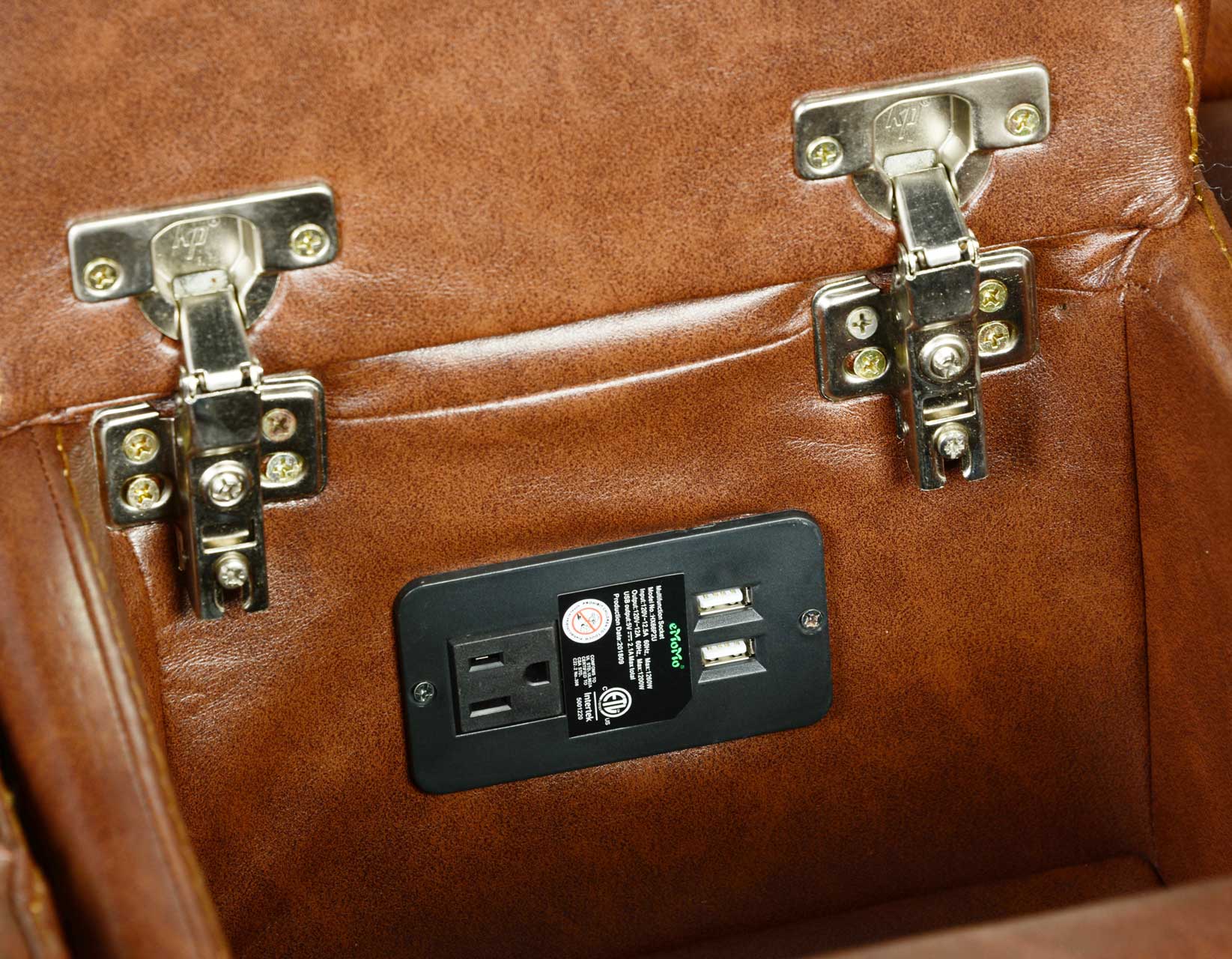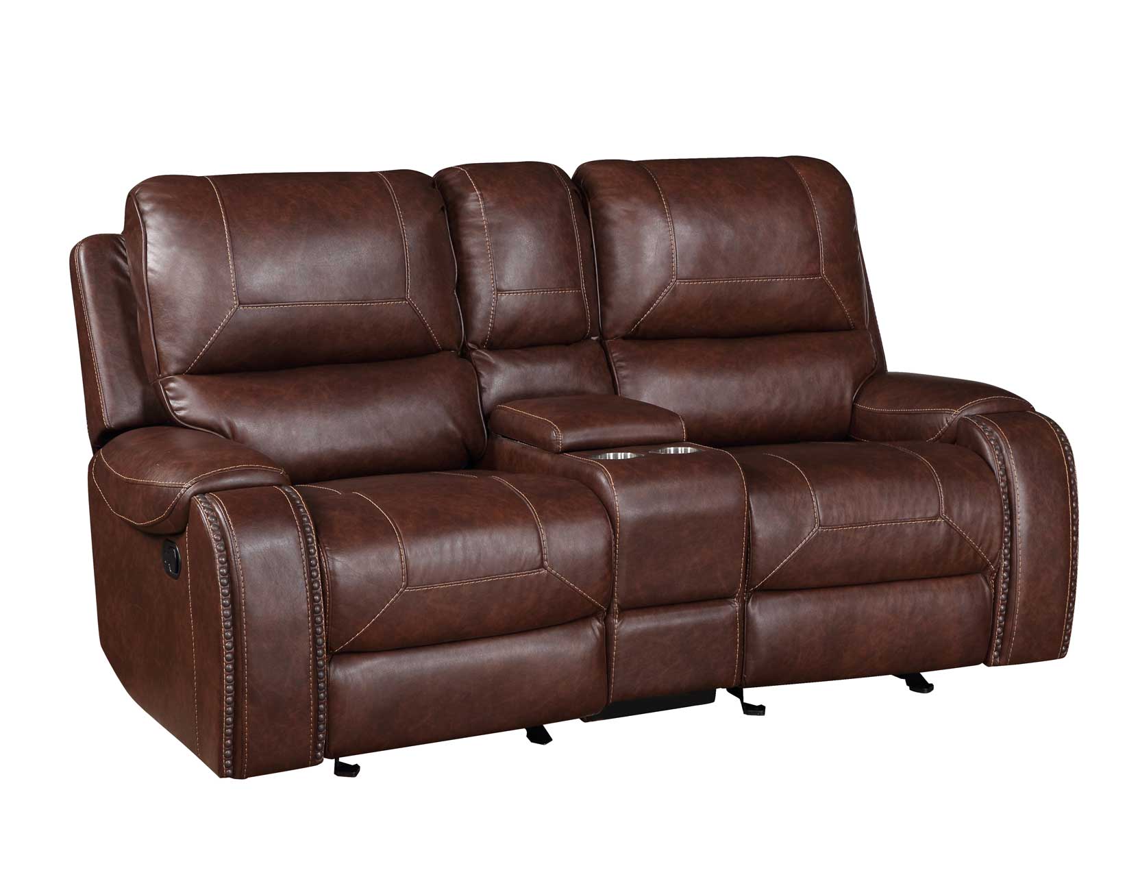 Superior comfort and style are the hallmarks of this motion set. Featuring a leather-like cover with baseball stitching, this ensemble comes with a Sofa with a drop-down console & USB charging station; a Loveseat with dual rocker/recliner ends; and a rocker/recliner Chair with 360-degree swivel. Antiqued brass nailhead trim and padded arms complete this ultimate motion package.