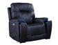 Lexington has the bells and whistles that will make it your favorite chair in no time. This triple-power recliner features a power headrest, power footrest, and power lumbar along with hidden, lighted cupholders! This reclining all-star also has styling with transitional design and a beautiful Ocean Blue leatherette cover that is pillow-soft to the touch.