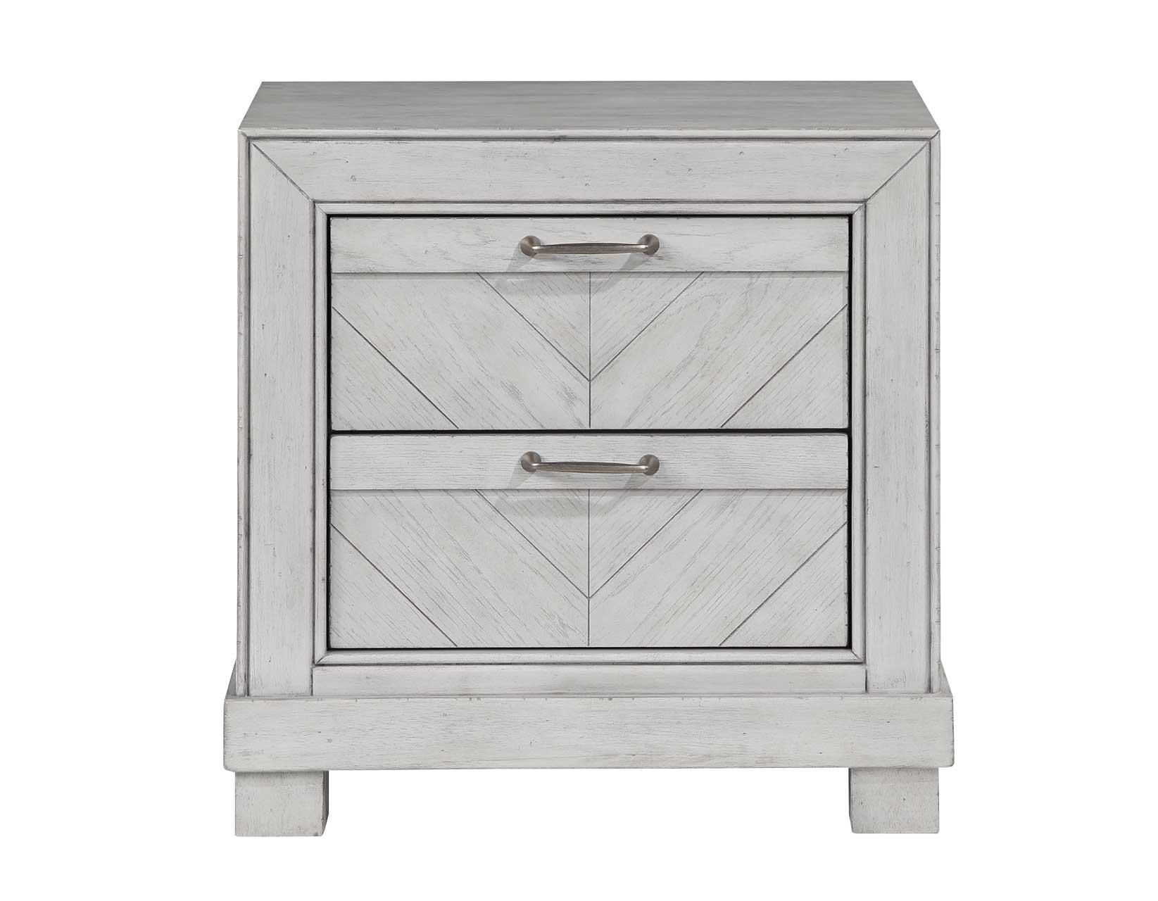 A wonderful bedside companion in matte gray with oil-rubbed brass hardware, the Montana Nightstand stores all your necessary items for the bedroom. Two drawers feature have safety stops and are fully extendible to maximum storage space within the Nightstand. Chevron fronts add a simple design that adds detail to the neutral gray exterior.
