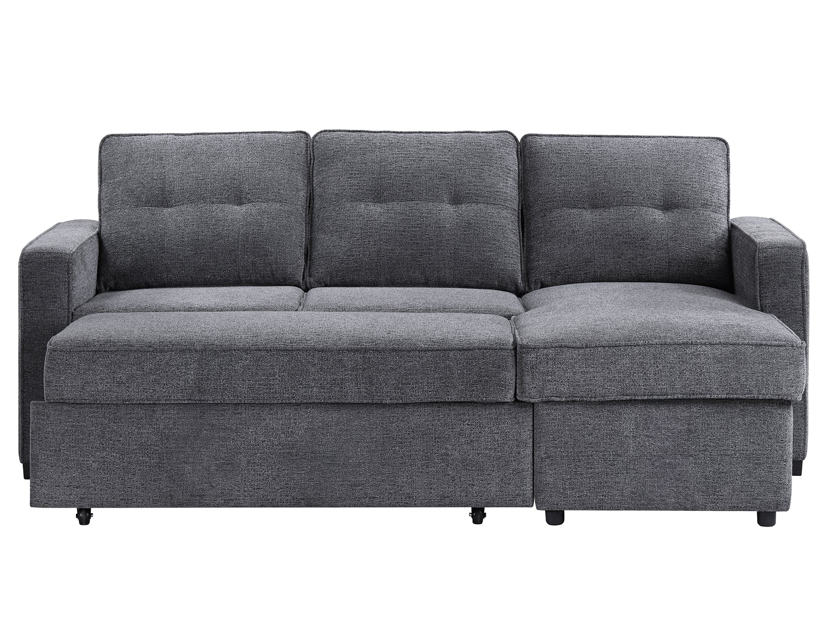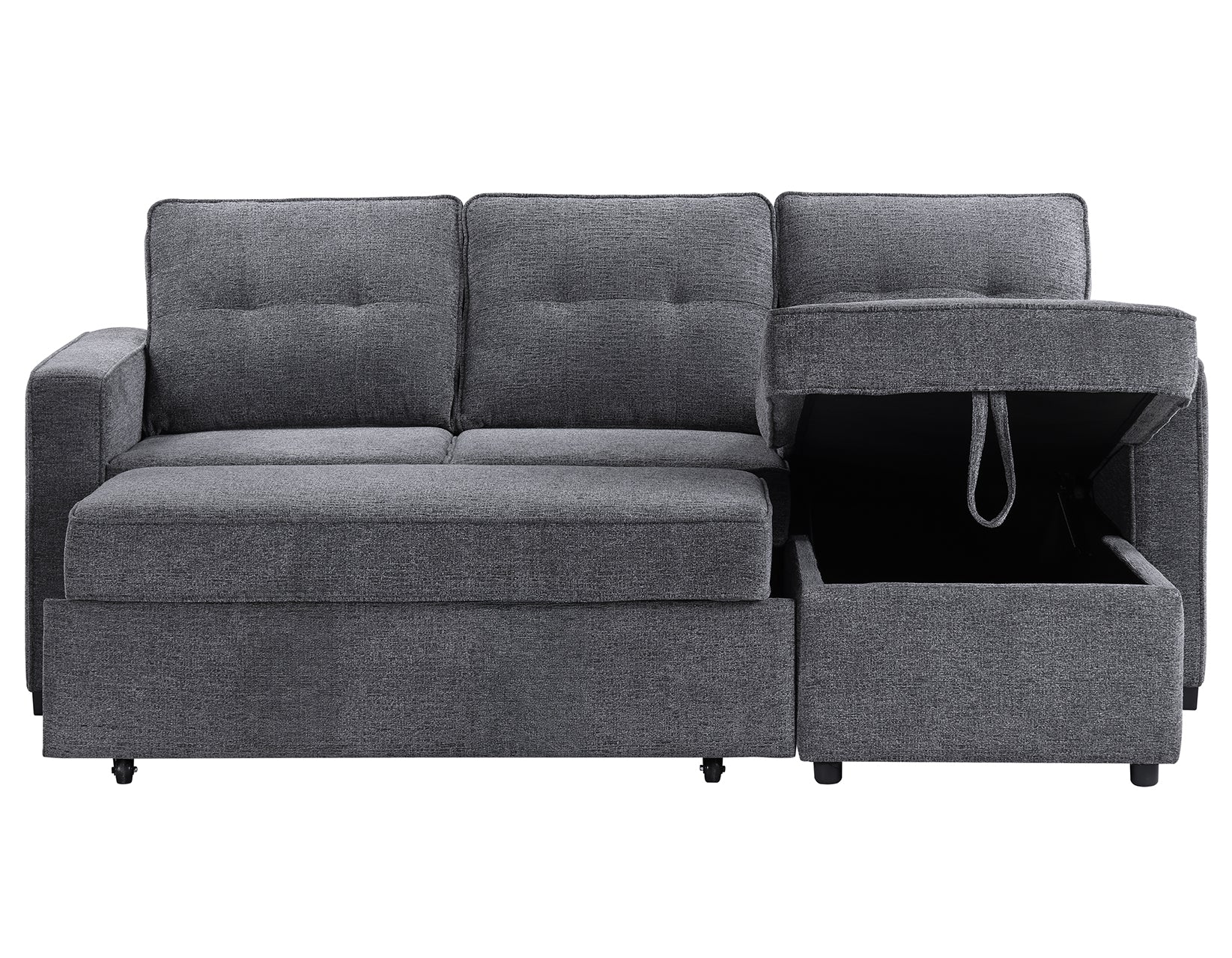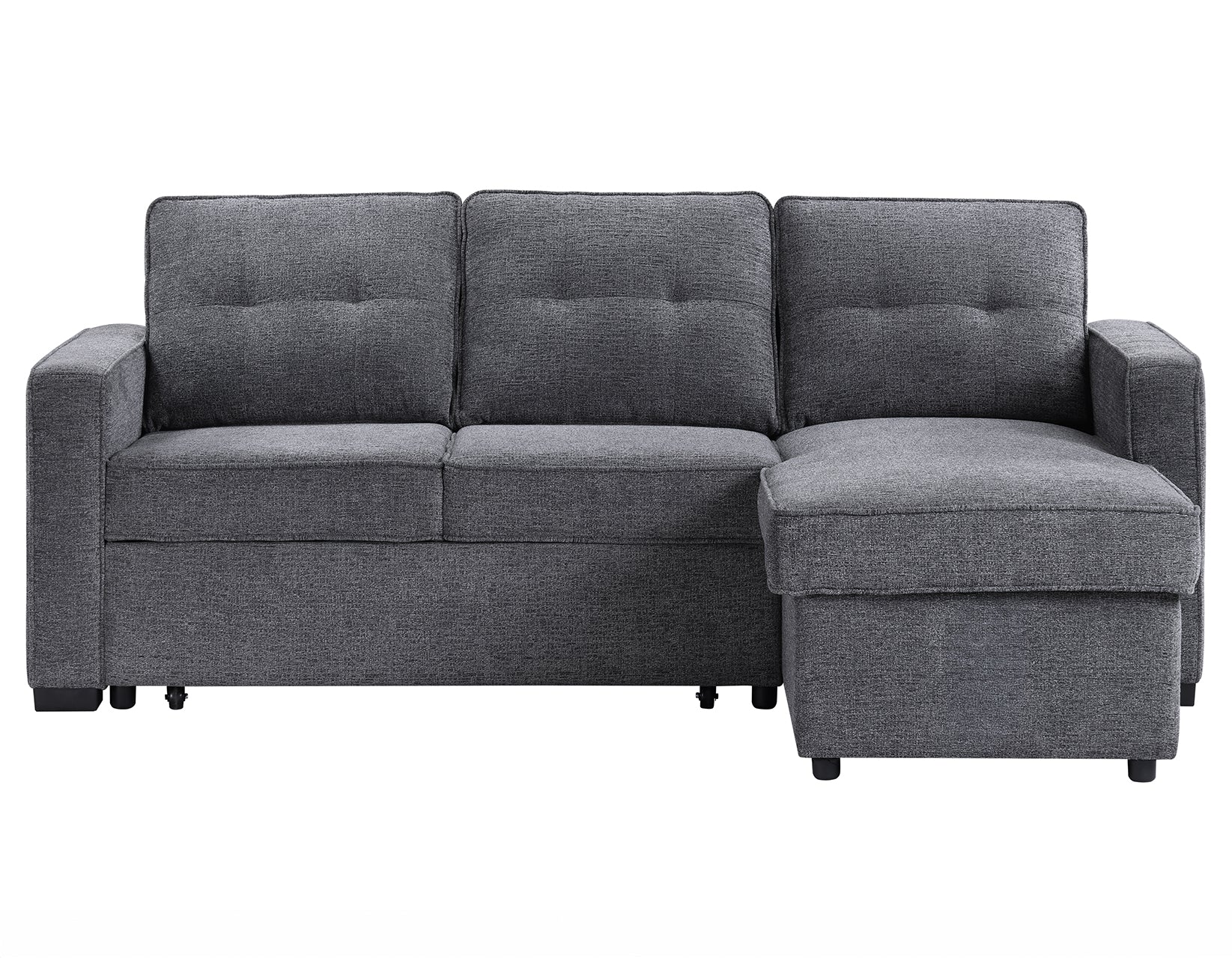 Elevate your living space with the versatile Noah Reversible Chofa. By day, it’s a stylish Chofa with a chic modern design with a chaise that can be configured for the left or right side depending on your room. When night falls, the Noah effortlessly transforms into a spacious 54D x 79W sleep surface with a simple pull, providing a comfortable spot for guests or for you to unwind. The hidden storage under the chaise is perfect for keeping sleep essentials close at hand. Wrapped in a cozy gray chenille fabric, this Chofa seamlessly blends with most decors while ensuring a plush and inviting surface for both sitting and sleeping.