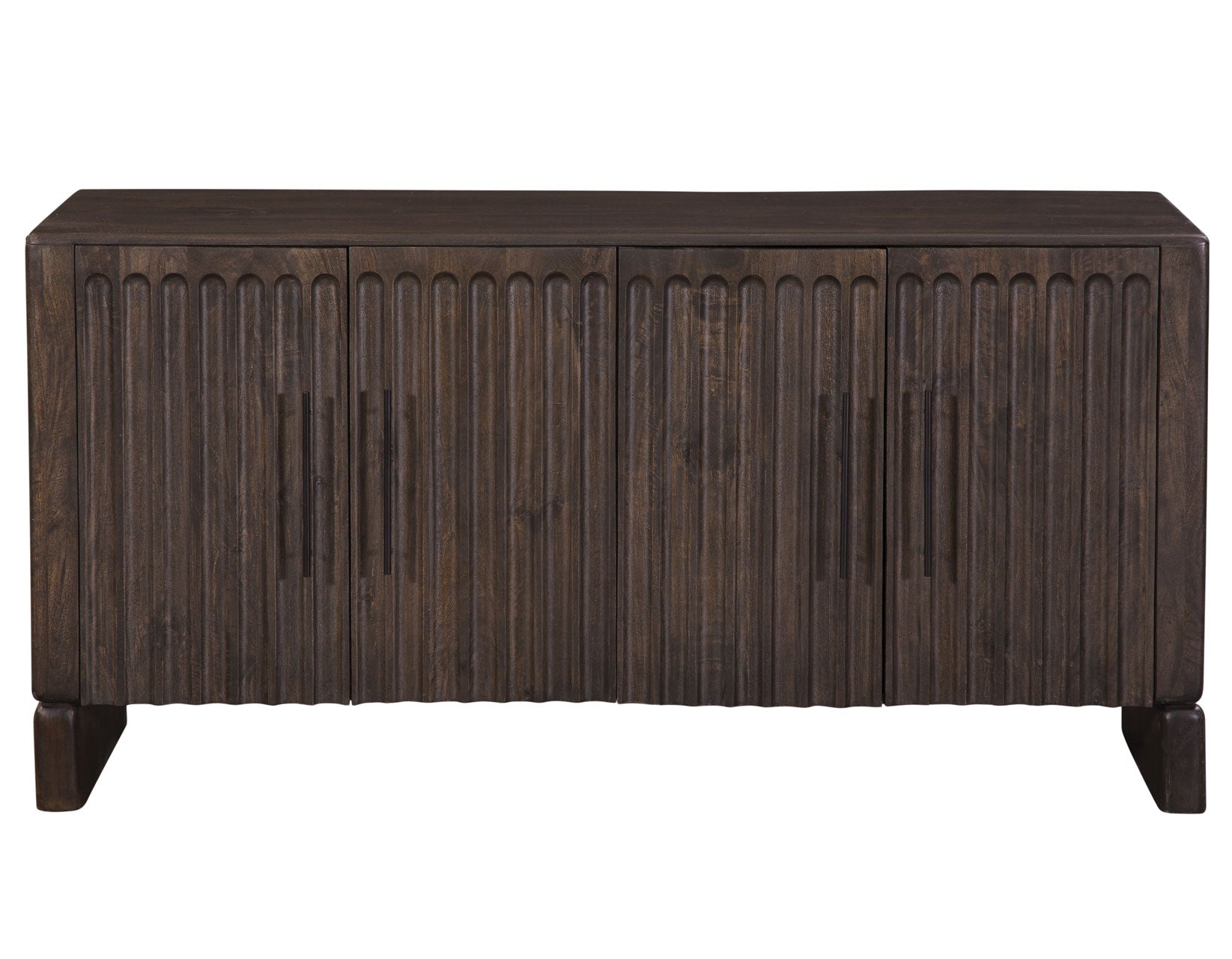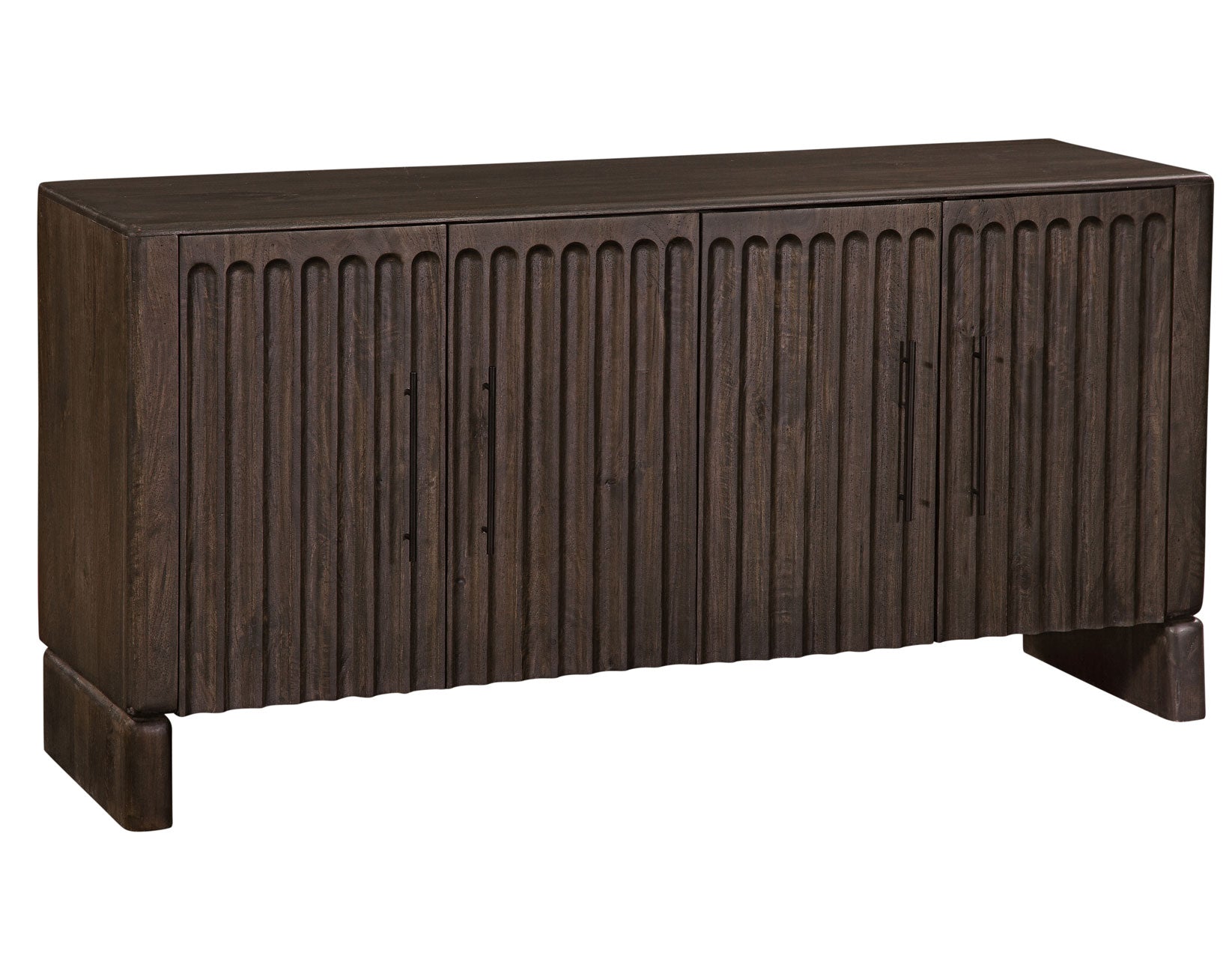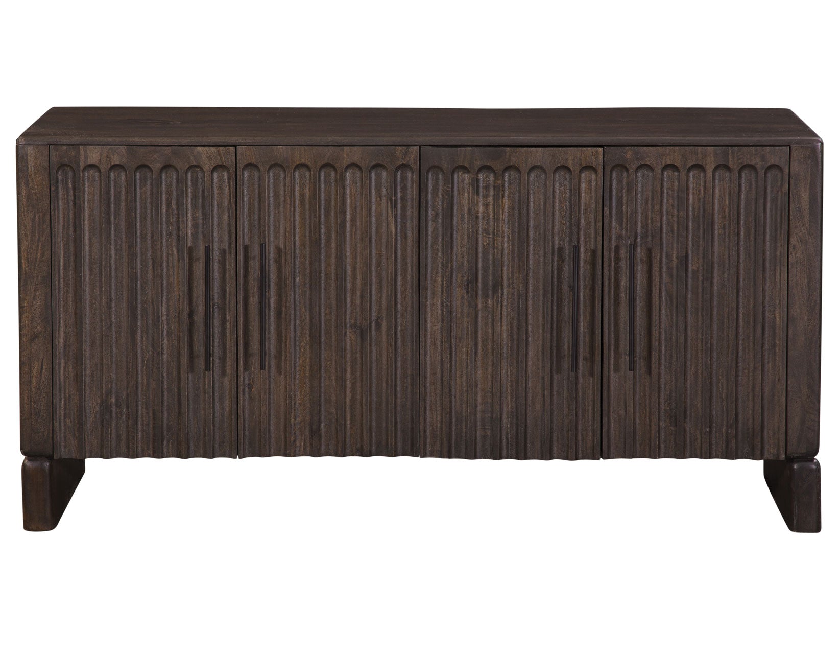 Functional, beautiful storage for the dining room or other areas of the home, the Norvell 4-Door Sideboard offers timeless style with practical versatility. Crafted from solid mango wood in a rich dark walnut finish, it features clean, modern lines with a lightly rustic touch thanks to its reeded front detailing. Two adjustable shelves provide flexible storage for dinnerware, linens, or everyday essentials. Designed with a transitional sensibility, Norvell effortlessly complements a variety of decor styles, making it the perfect accent piece for dining rooms, entryways, or living spaces.