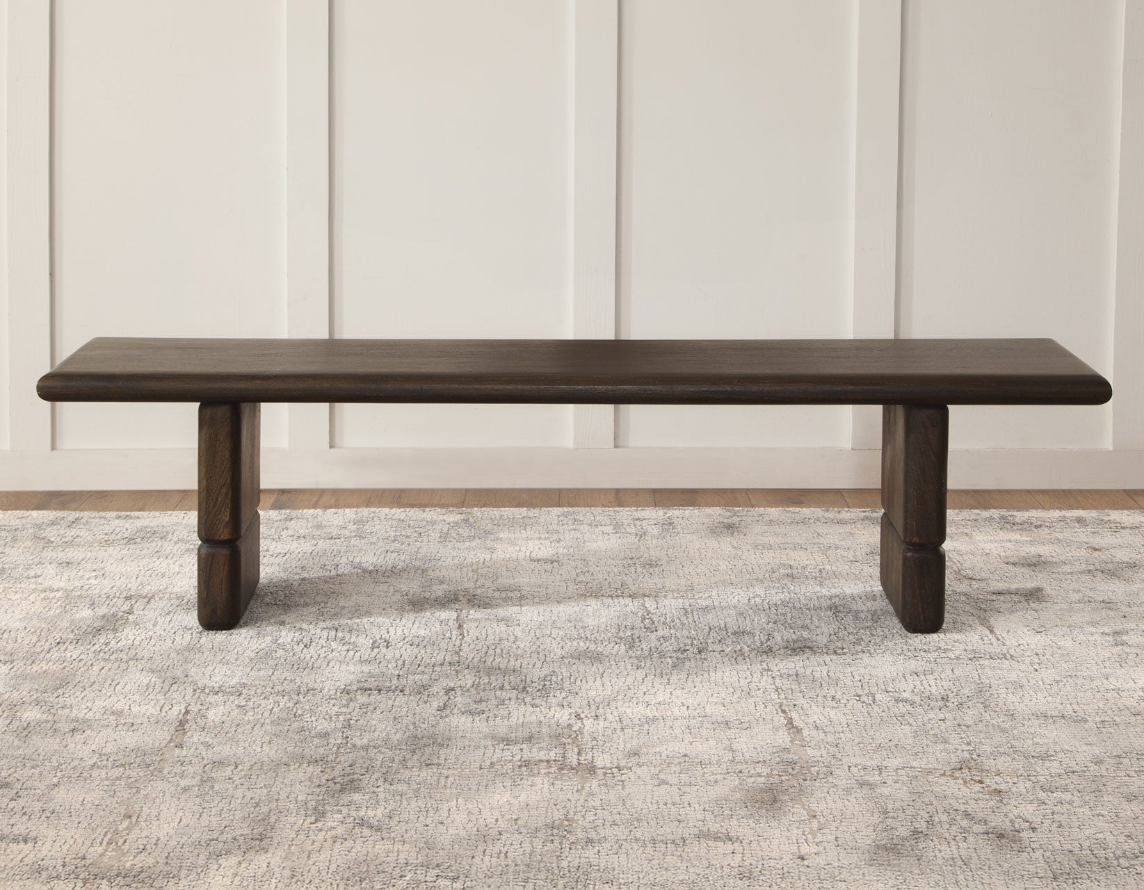 The Norvell Solid Wood Bench is a versatile piece that brings both style and function to your home. Whether placed at a dining table, in a hallway, mudroom, or at the foot of a bed, this bench delivers timeless appeal. Crafted from solid wood, it features a gently curved bullnose edge and a double pedestal base with a distinctive notched panel detail for added character. Sturdy, stylish, and multifunctional, the Norvell Bench is a smart addition to any space.
