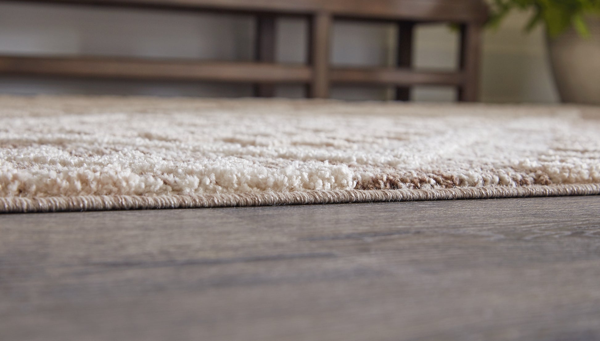 | Details | Made of polyester shrink yarn/polypropylene frieze blend, Machine woven high-low pile, 10mm pile, Backed with jute, 3" braided tassel edge, Spot clean only, Rug pad recommended, Imported | |