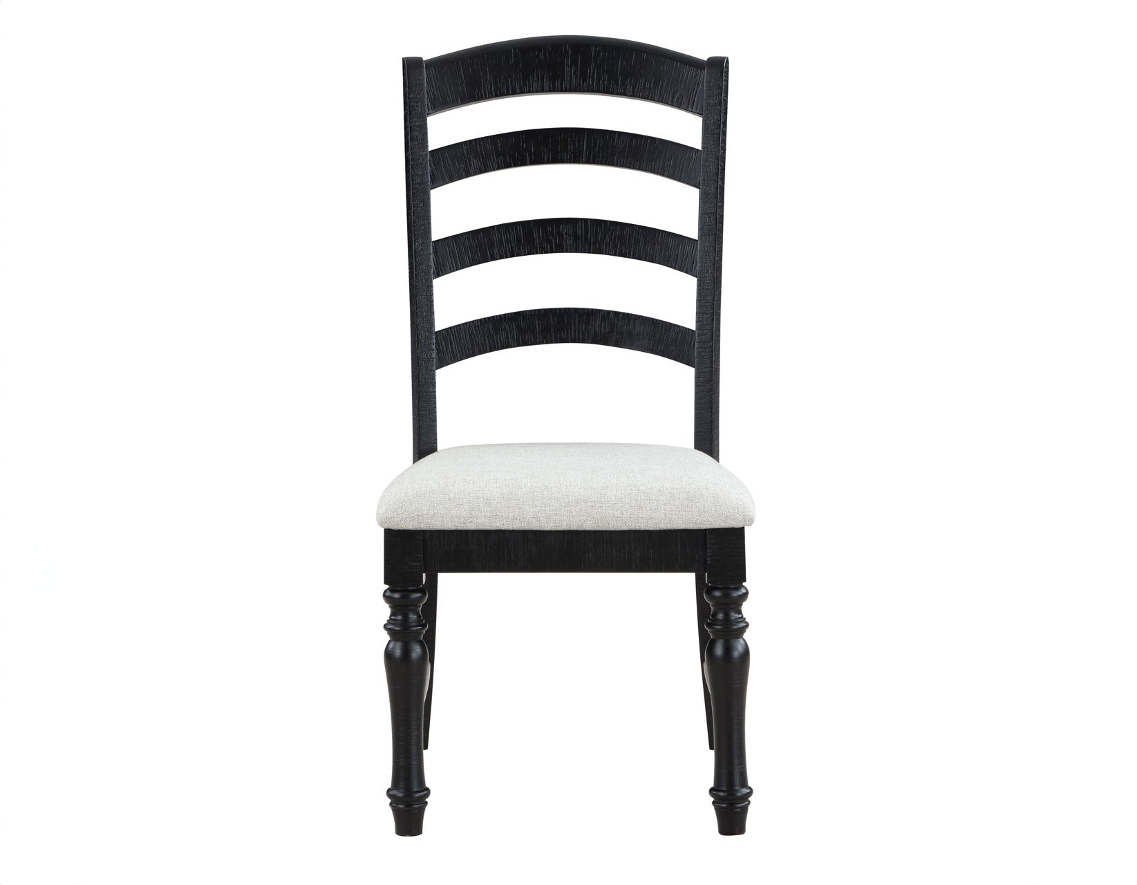 The Odessa Dining Collection offers a sophisticated take on classic farmhouse styling, featuring a bold black finish with artful distressing that enhances the natural beauty of the wood. Designed for comfort and durability, this collection blends solid wood craftsmanship, saw-rasp textures, and deep cushioned seating, creating a warm and inviting dining space. The 66-inch table expands to 84 inches with an 18-inch locking leaf, ensuring ample space for up to eight guests.