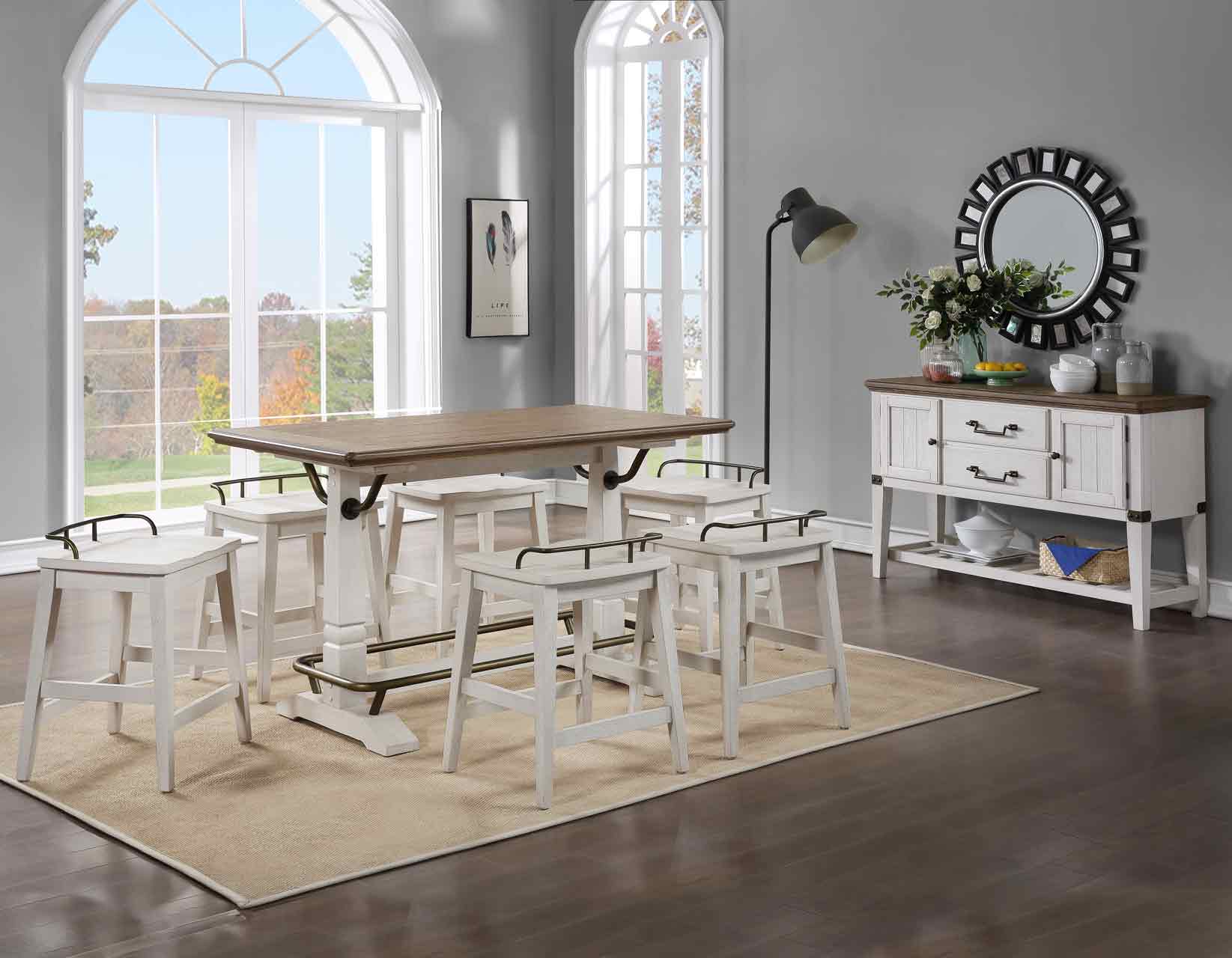 A casual two-tone finish and heritage farmhouse style are the hallmarks of the Pendleton Counter Height Gathering Table. Ivory and Honey Oak tones give an instant feeling of home while the plank-effect table and a saloon-style galley rail make the table feel like an instant time-treasured heirloom. Pair with the matching Pendleton Counter Stools for a coordinated classic look.