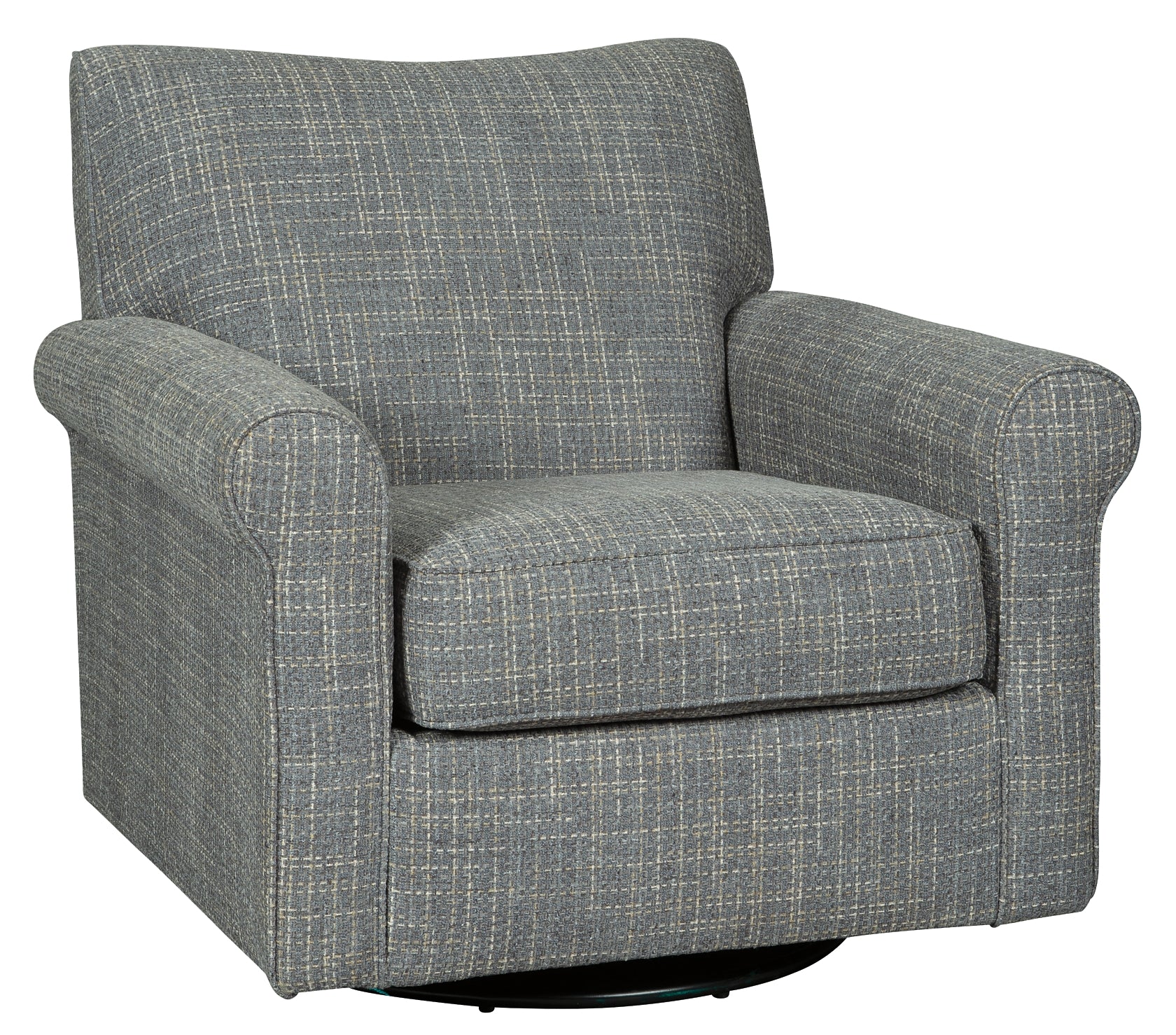 Sporting a tantalizing tweed weave fabric in such a soothing blue hue, this swivel glider accent chair gives the classic roll arm chair a modern twist. Smooth, 360-degree swivel caters to your comfort—and your viewing pleasure. Gentle glider feature is designed to rock your cares away.