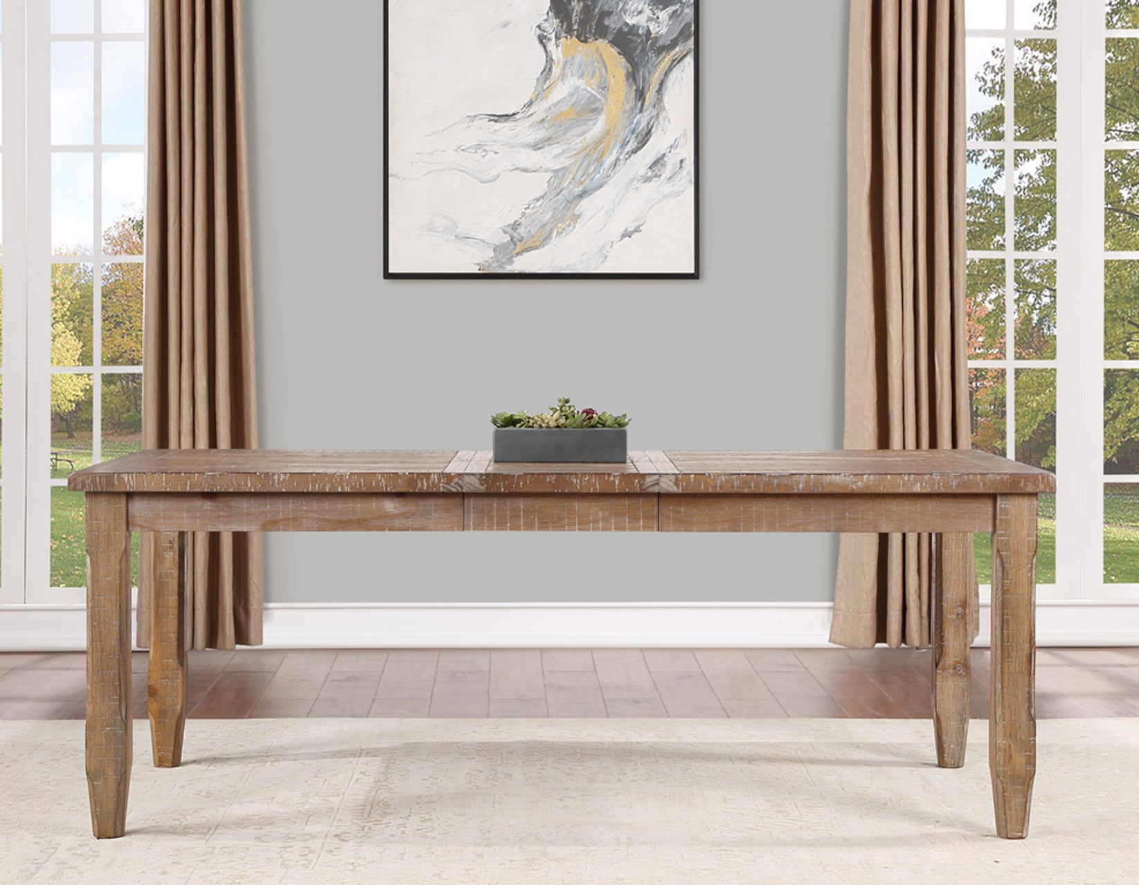 Casual and relaxed, but with a subtle sophistication you’ll appreciate, Riverdale elevates Modern Ranch style with this upholstered dining set built for today’s lifestyles. The RV700 dining set carries on the Riverdale of heirloom distressing and waxy finish hang-up but adds a new twist by pairing the table with a button-tufted, nail-head trim chair that dresses up the collection just enough to make your meals ever more delightful.