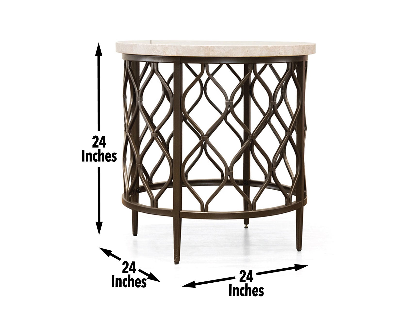 A delicate piece that commands attention, the Steve Silver Roland Cocktail Table combines the toughness of metal and stone with the graceful charm of its delicate fretwork base. A striking white stone tabletop and bronze metal base command the attention of all who look its way, and the unique design complements décor styles from farmhouse to glam.