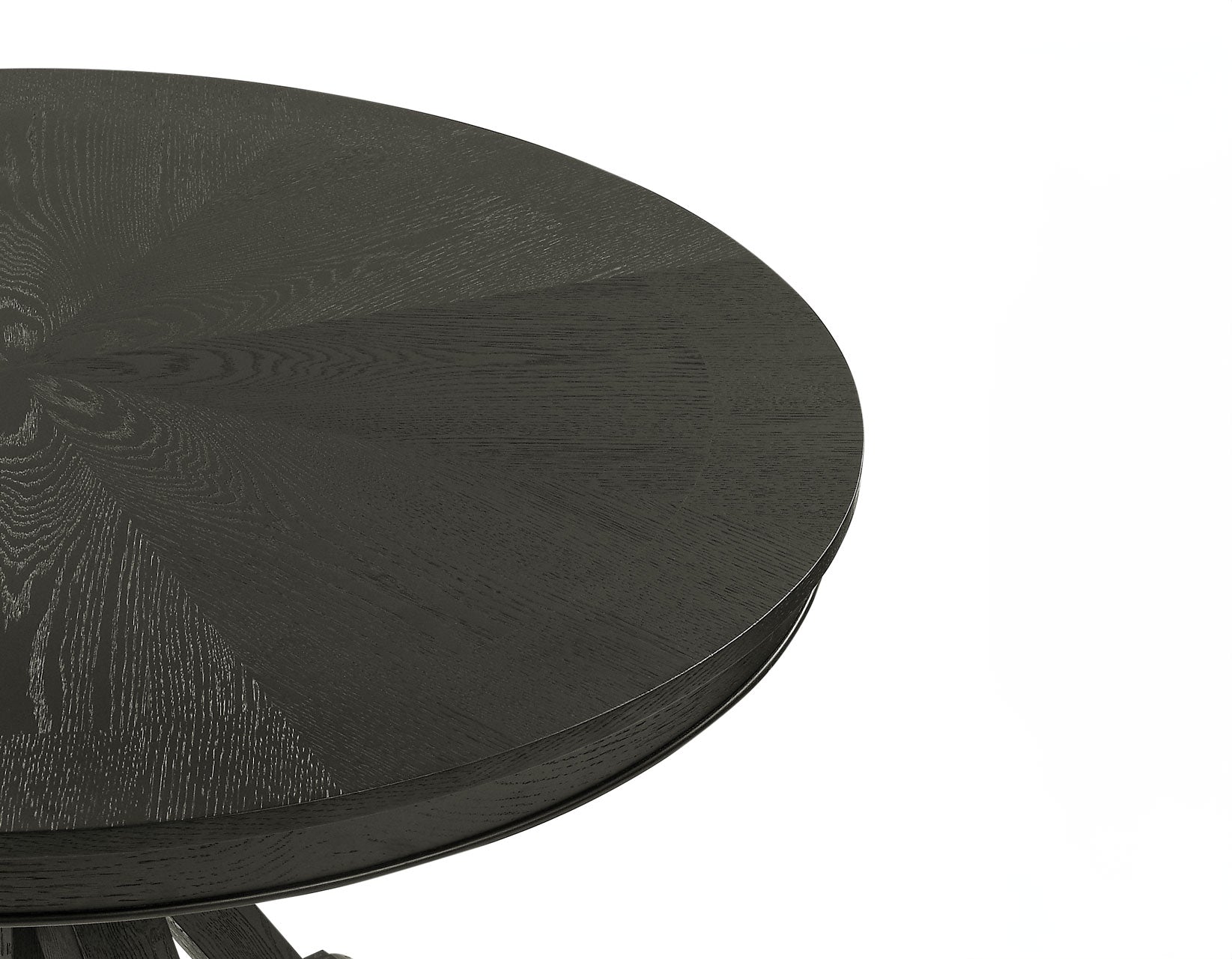The Rylie 48-inch Round Trestle Table brings rustic design into the future in a cozy and intimate package that will dress up any room. With a black finish over oak veneers, this table freshens up a classic design. A masterpiece of craftsmanship and style, this table showcases a stunning pinwheel oak veneer designed top that beautifully displays the wood’s character and grain. The rustic, timber beam trestle base provides a solid foundation, ensuring stability and durability.