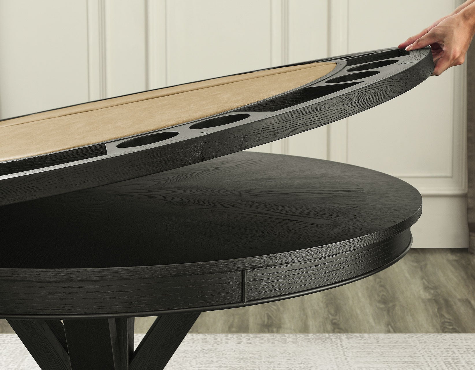Rylie 48-inch Round Dining Table with Folding Game Top, Black Finish