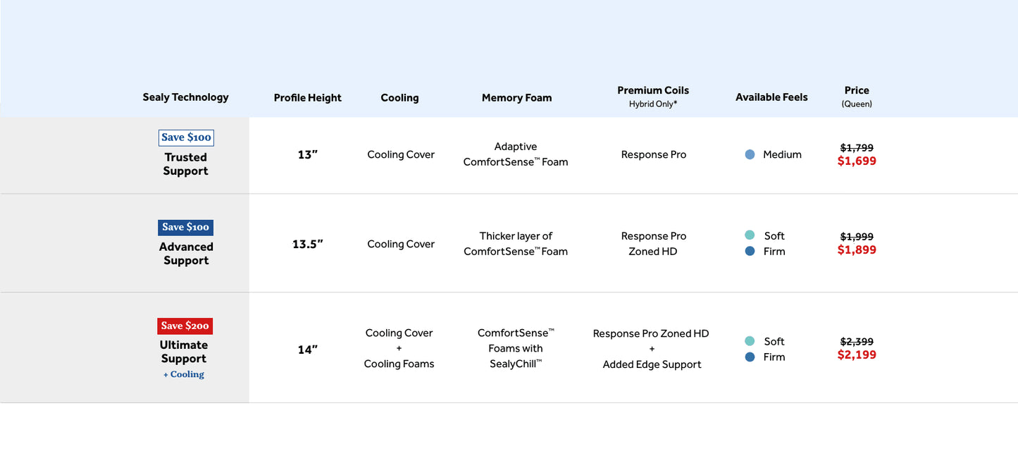 Sealy Naturals Hybrid Mattress - Soft - Queen
