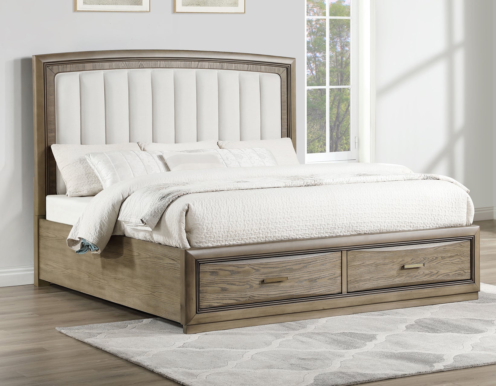 Designed with modern living in mind, the Sonoma King Storage Bed offers the perfect marriage of style and practicality. Two spacious built-in drawers at the foot of the bed provides the ideal solution for storing bulky seasonal items or everyday essentials. The gently arched headboard is adorned with a cream fabric insert, adding a soft, inviting touch that beautifully complements the cocoa gray finished oak veneers. The result is a clean, contemporary look that transforms your bedroom into a serene and organized sanctuary. The Sonoma Queen Storage Bed is not just a statement piece—it’s a smart, stylish investment for your home.