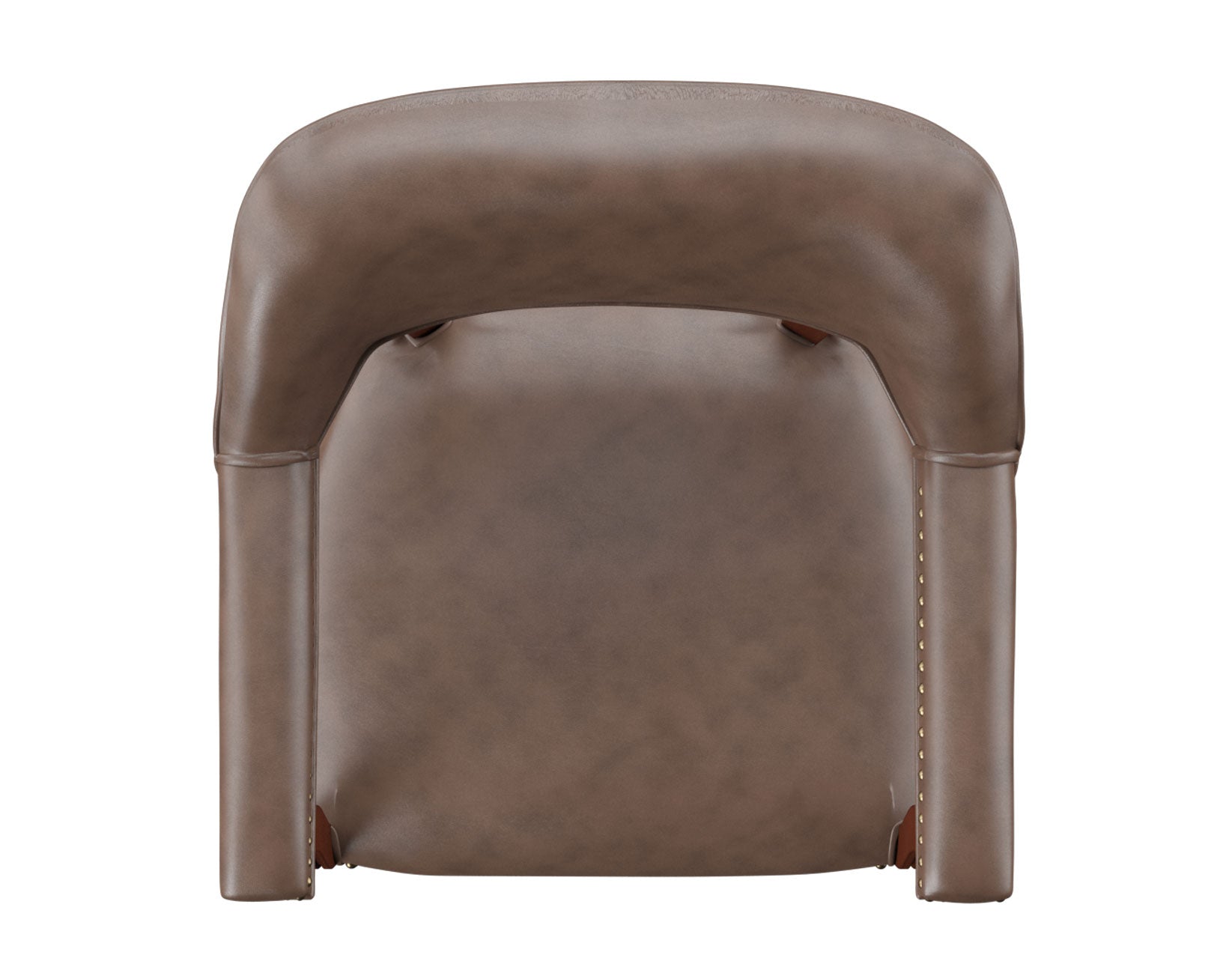 Enjoy both game night and dining night with this versatile dining and game chair. The upholstered captain’s chair, featuring casters for easy mobility, is shown in brown but available in other colors. With nailhead trim and a rich cherry finish, it suits both gaming and dining occasions. Upholstered in easy-to-clean vegan leather, this Captain’s Chair offers exceptional comfort.