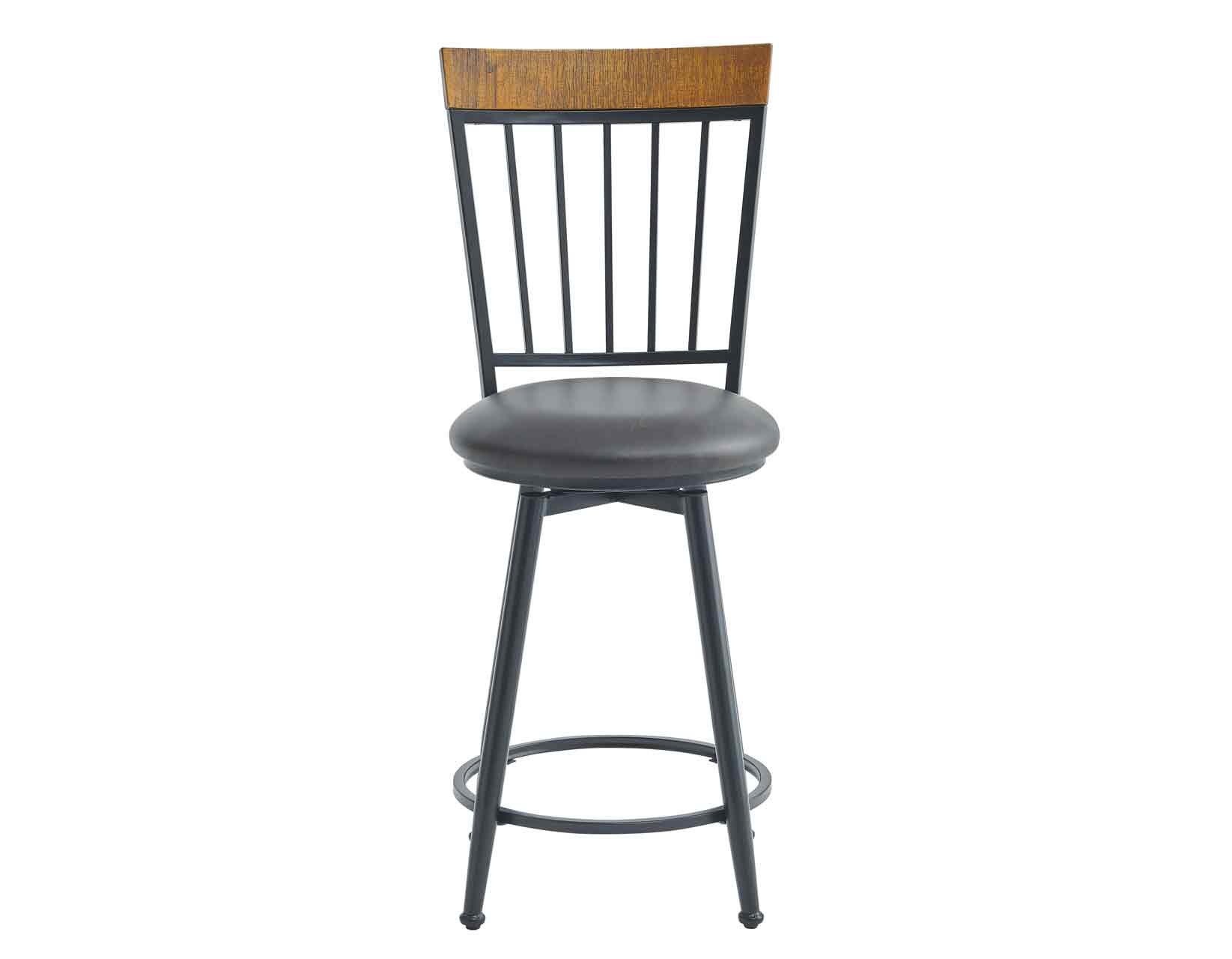 Rustic charm in a 24-inch Counter Stool built for the Tyler Bar but also comfortable in other settings. The Tyler Counter Stool offers 360 degree swivel with a padded, eacy-care black leatherette seat that cleans with the wipe of a damp cloth. A durable electrostatic painted iron base means you won’t have to worry about chips or scratches and can just enjoy the beautiful styling of the solid birch top rail. An included footrest completes the package to make a great chair for any 36-38 inch high counter.