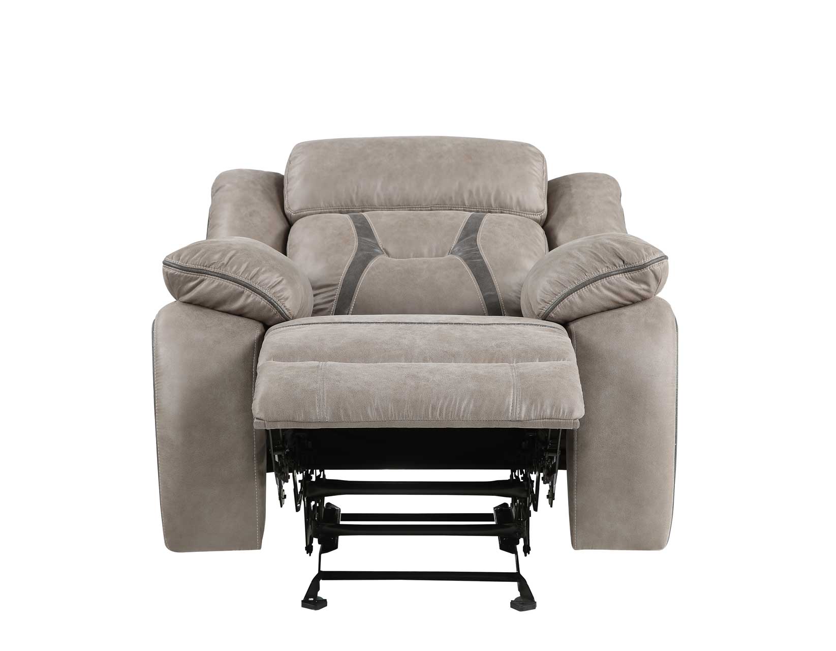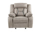 Comfortable and cozy, the Tyson manual reclining Glider Recliner provides a motion experience in a compact package. Reclining opens at the flick of the button and glides when closed. The grey leatherette cover is soft to the touch, breathes for added comfort and cleans easily with the wipe of a damp cloth.
