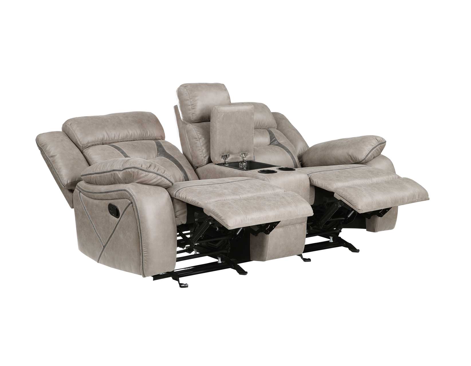 Comfortable and cozy, the Tyson manual reclining Console Loveseat provides a motion experience in a compact package. Reclining ends open at the flick of the button and glide when closed. The center console adds a comfortable armrest and provides valuable storage for remotes and valuables.